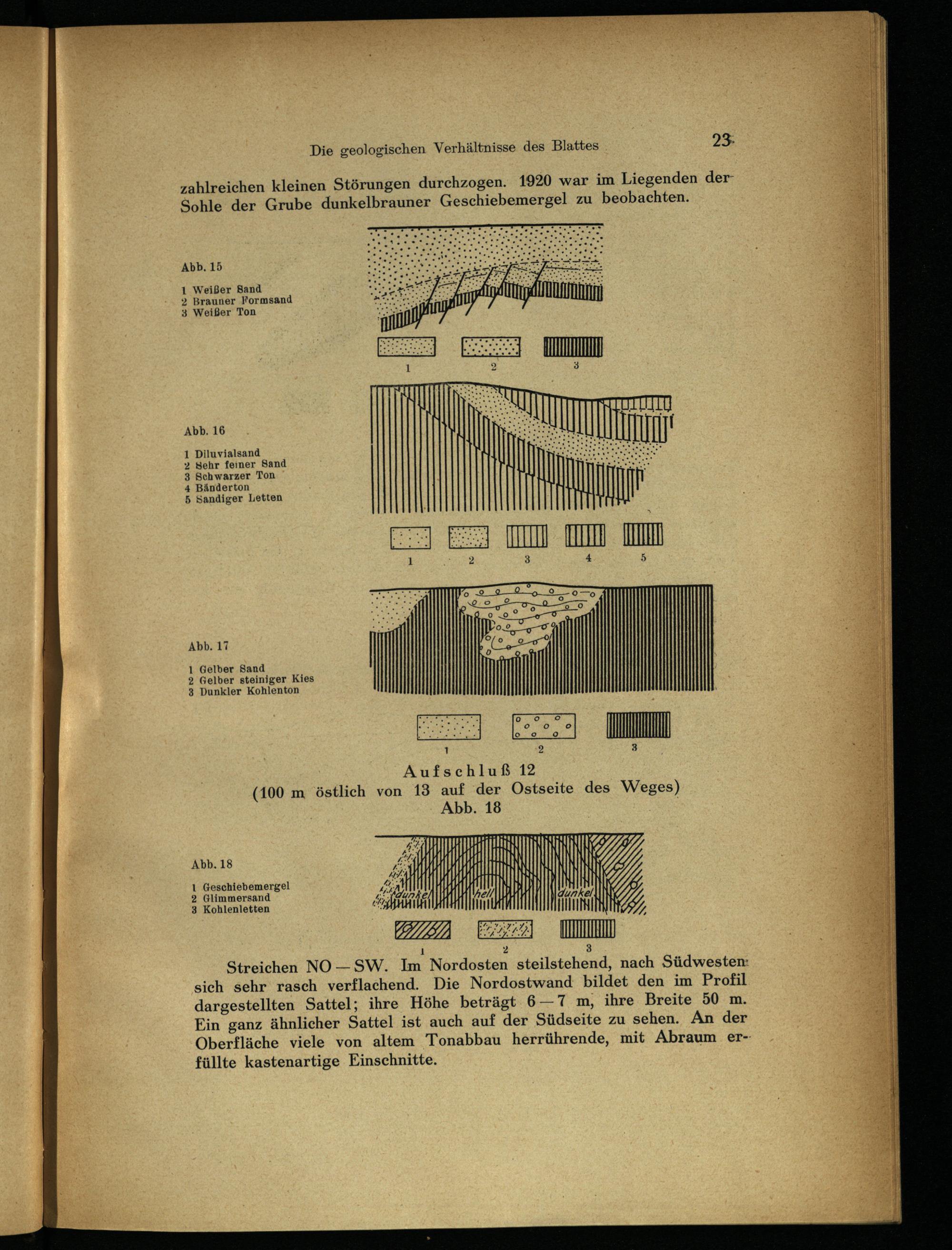 zahlreichen kleinen Störungen durchzogen. 1920 war im Liegenden derSohle der Grube dunkelbrauner Geschiebemergel zu beobachten.