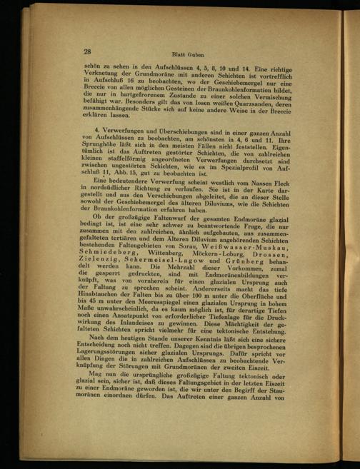 Nach dem heutigen Stande unserer Kenntnis läßt sich eine sichere Entscheidung noch nicht treffen. Dagegen sind die übrigen besprochenen Lagerungsstörungen sicher glazialen Ursprungs. Dafür spricht vor allen Dingen die in zahlreichen Aufschlüssen zu beobachtende Verknüpfung der Störungen mit Grundmoränen der zweiten Eiszeit,