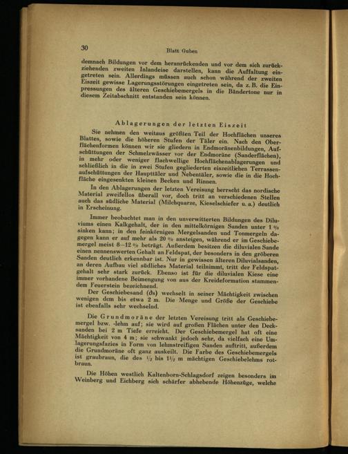 In den Ablagerungen der letzten Vereisung herrscht das nordische Material zweifellos überall vor, doch tritt an verschiedenen Stellen auch das südliche Material(Milchquarze, Kieselschiefer u. a.) deutlich in Erscheinung.