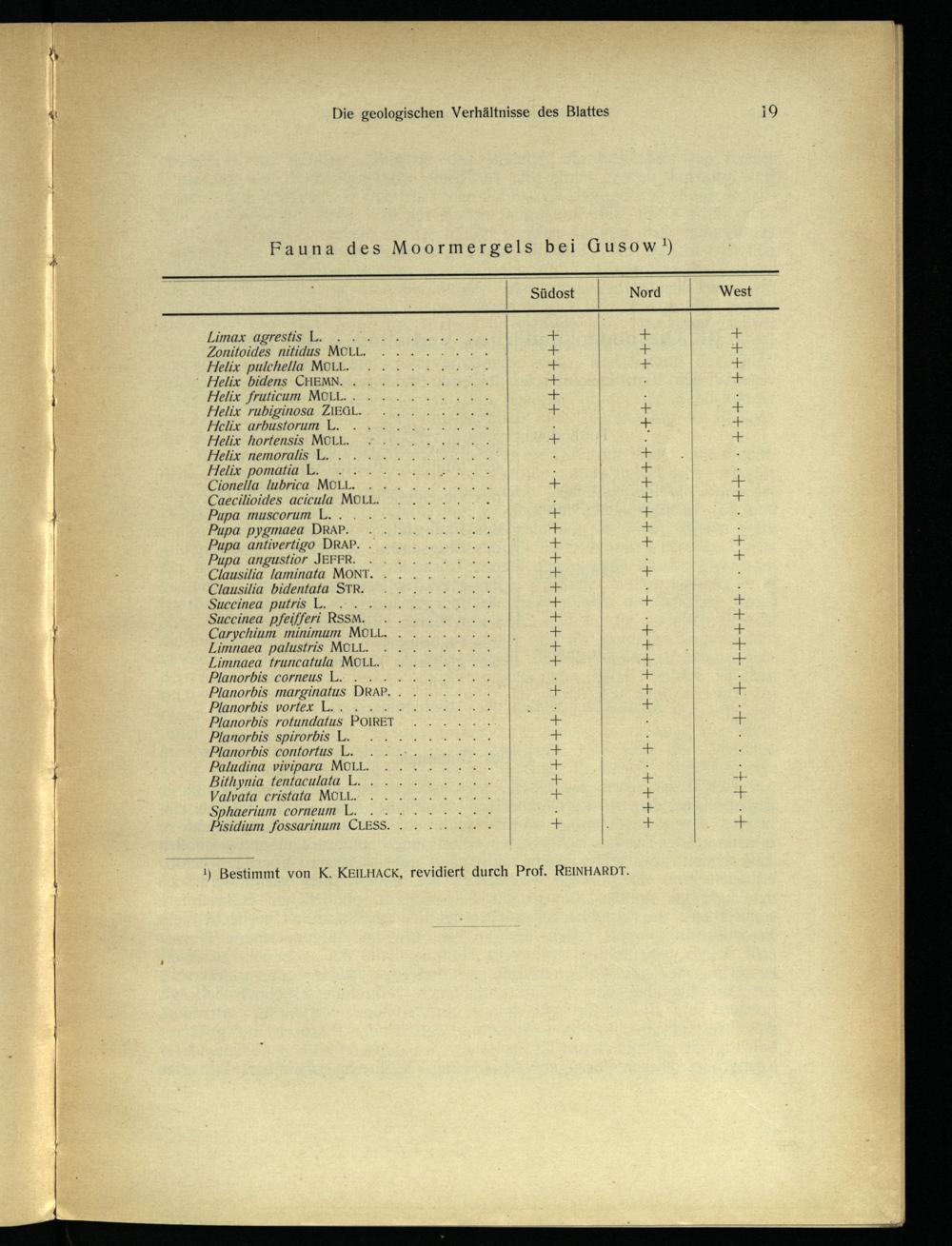 Fauna des Moormergels bei Gusow¹)