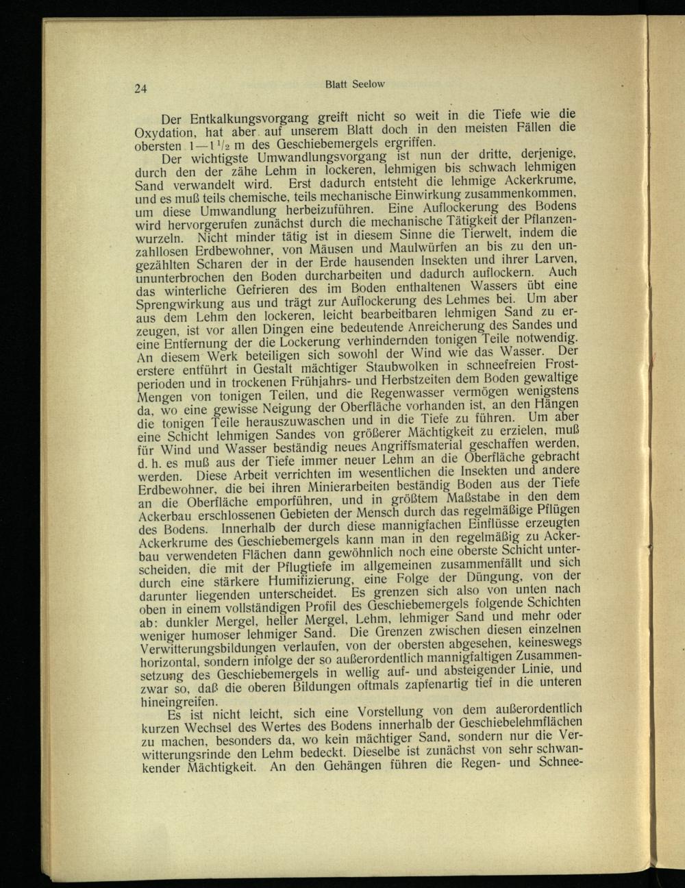 Der Entkalkungsvorgang greift nicht so weit in die Tiefe wie die Oxydation, hat aber. auf unserem Blatt doch in den meisten Fällen die obersten. 1—11!/2 m des Geschiebemergels ergriffen.