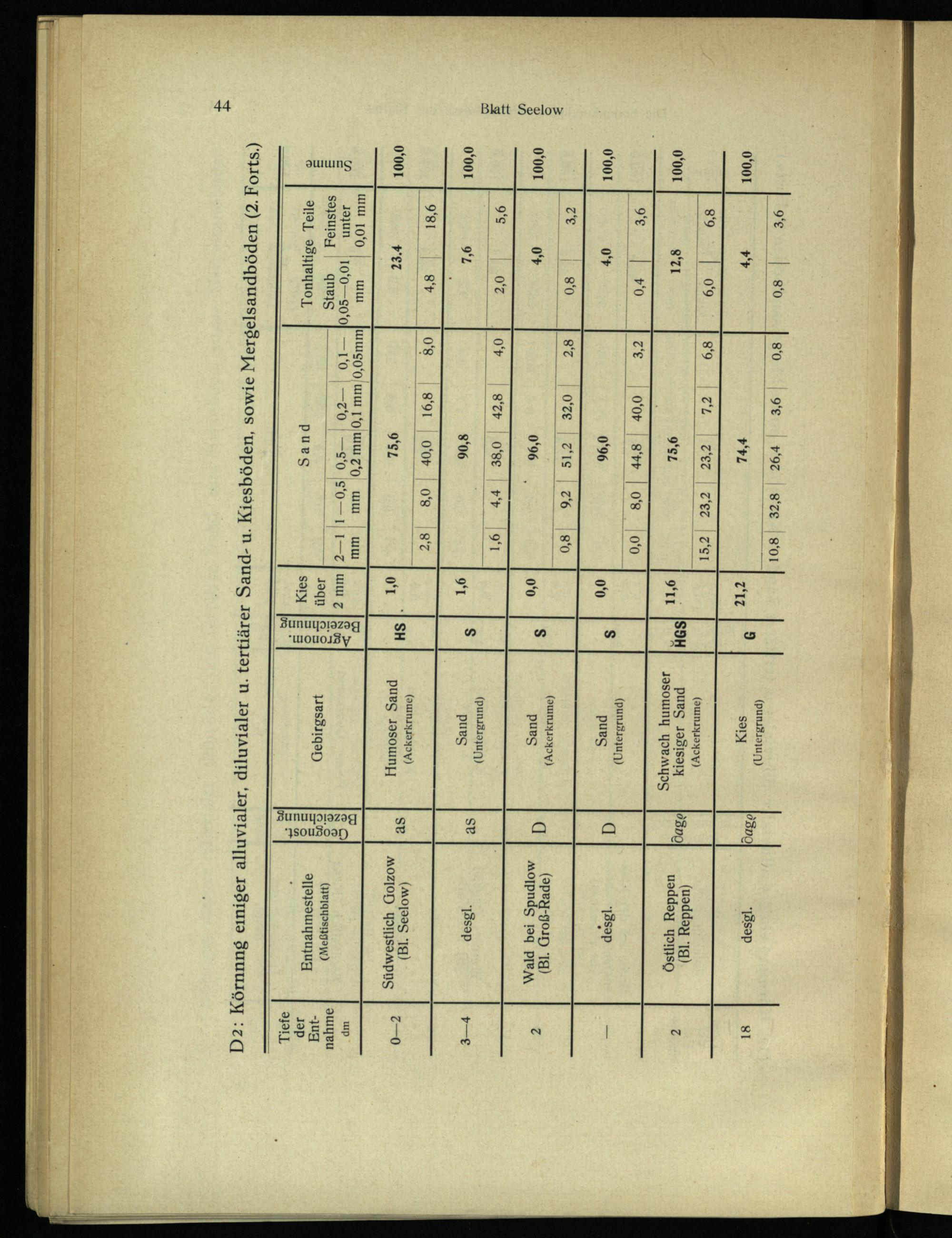 D2: Körnnng eıniger alluvialer, diluvialer u. tertiärer Sand- u. Kiesböden, sowie Mergelsandböden(2. Forts.)