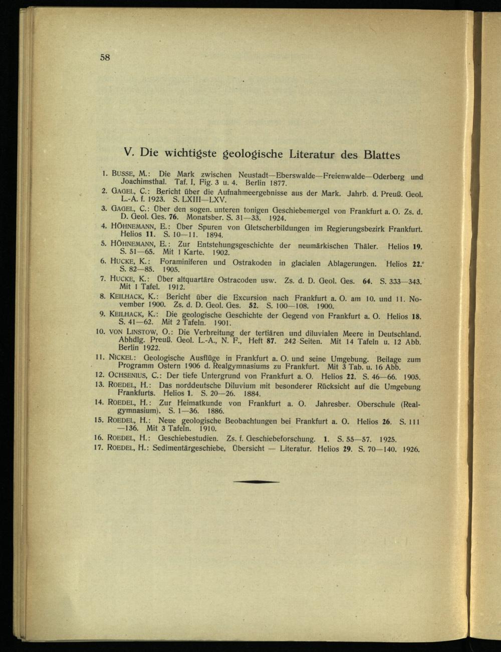 Programm Ostern 1906 d. Realgymnasiums zu Frankfurt . Mit 3 Tab. u. 16 Abb. OCHSENIUS, C.: Der tiefe Untergrund von Frankfurt a. O. Helios 22. S.4666. 1905. ROEDEL, H.: Das norddeutsche Diluvium mit besonderer Rücksicht auf die Umgebung