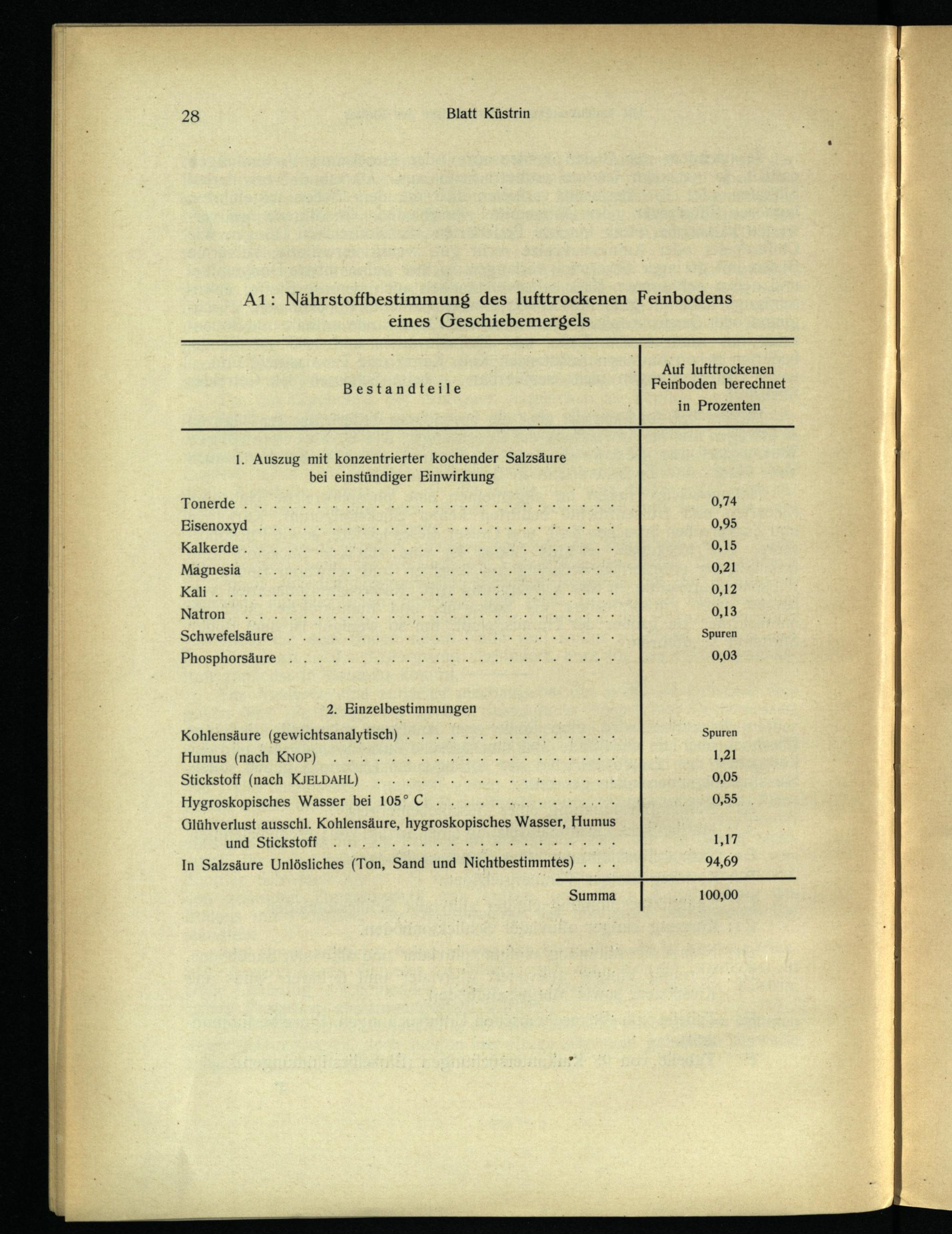 A1: Nährstoffbestimmung des lufttrockenen Feinbodens eines Geschiebemergels