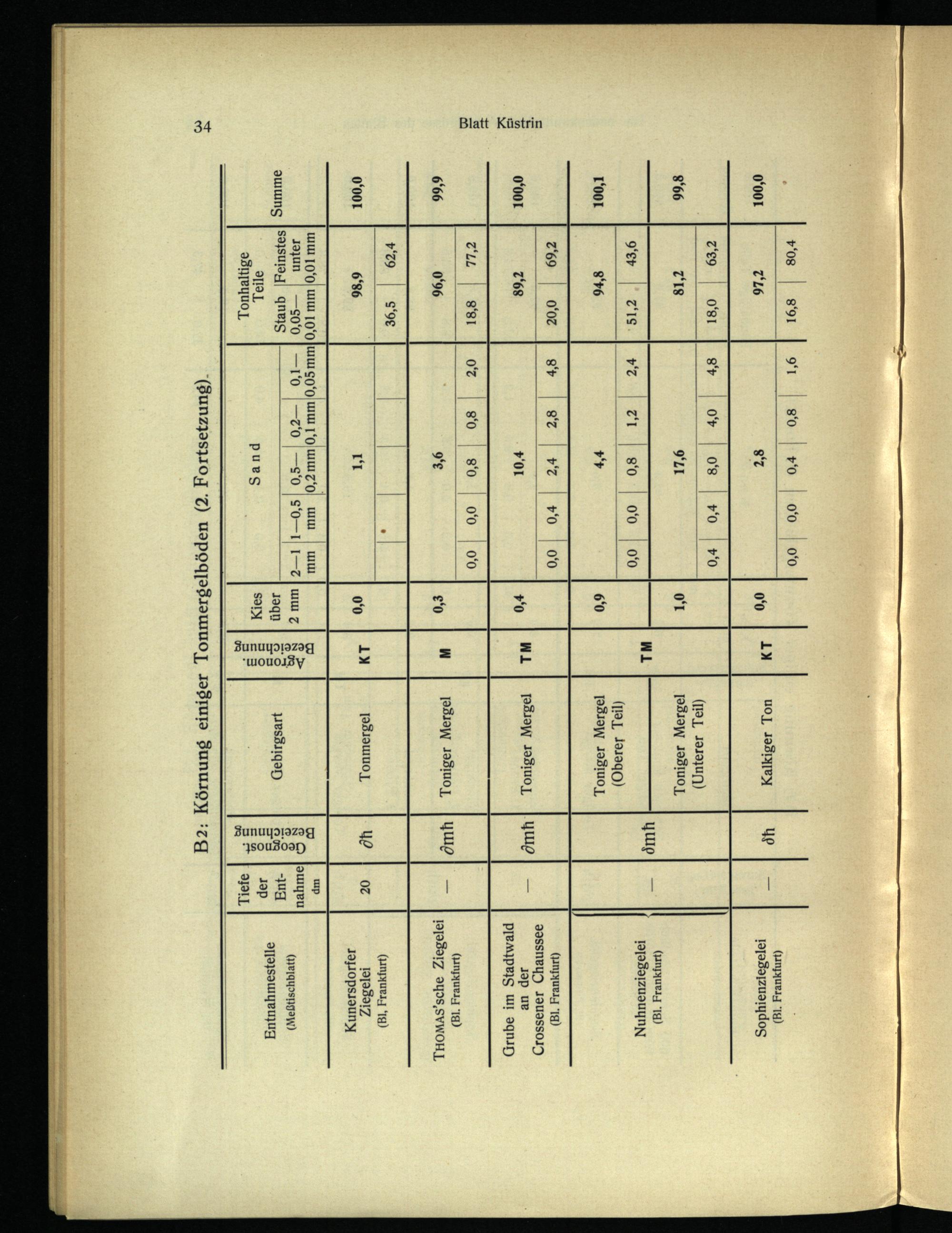 B2: Körnung einiger Tonmergelböden(2. Fortsetzung).