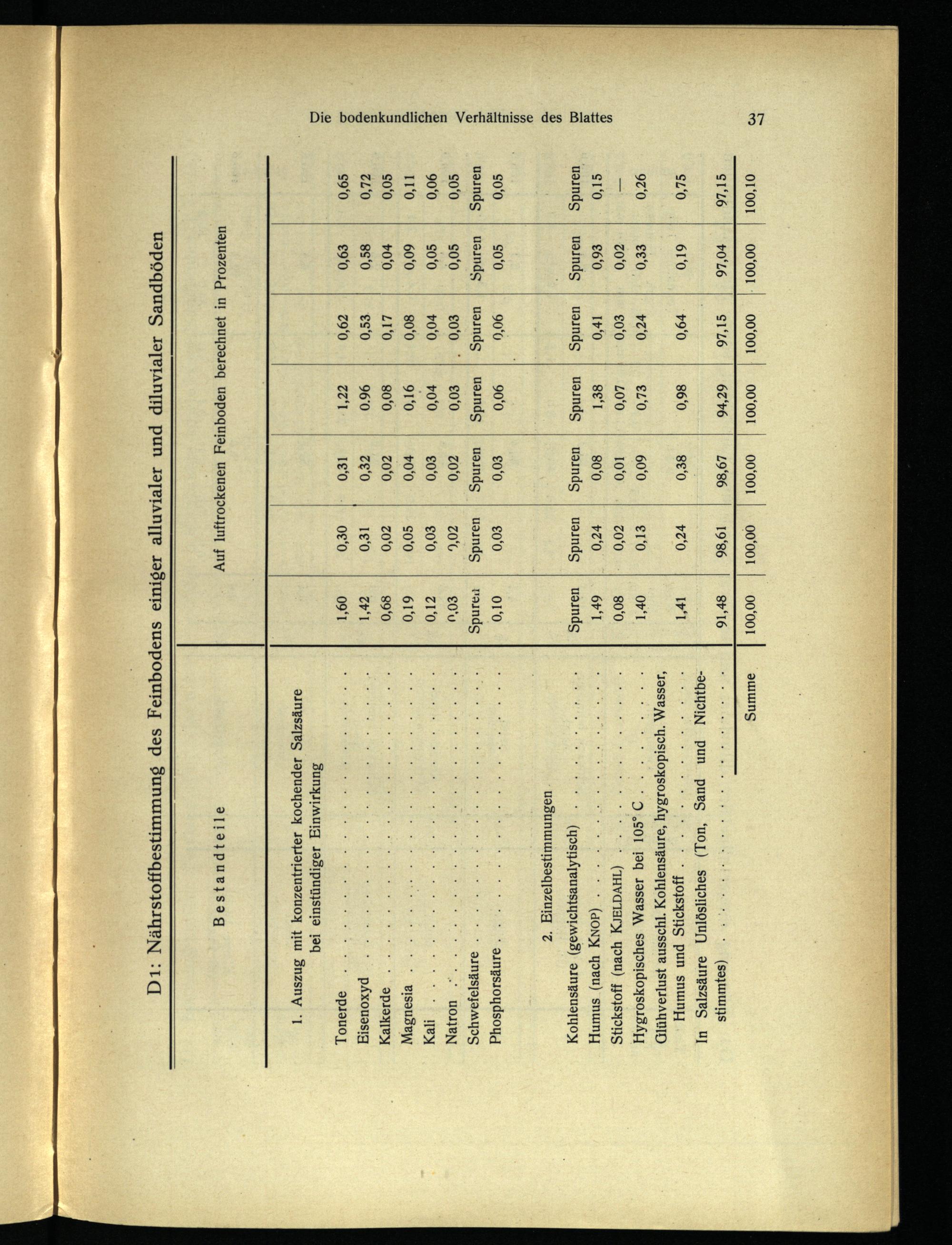 D1: Nährstoffbestimmung des Feinbodens einiger alluvialer und diluvialer Sandböden