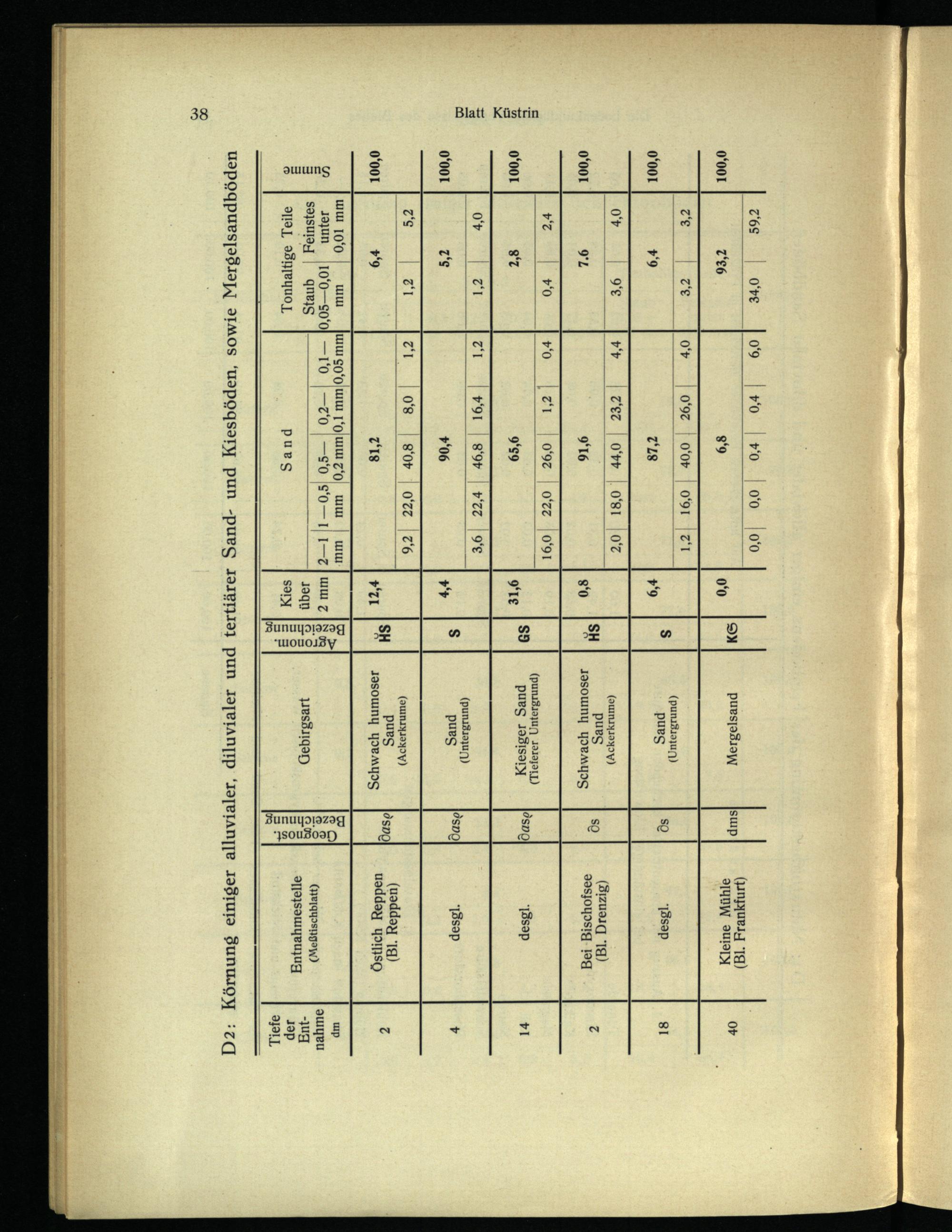 D2: Körnung einiger alluvialer, diluvialer und tertiärer Sand- und Kiesböden, sowie Mergelsandböden