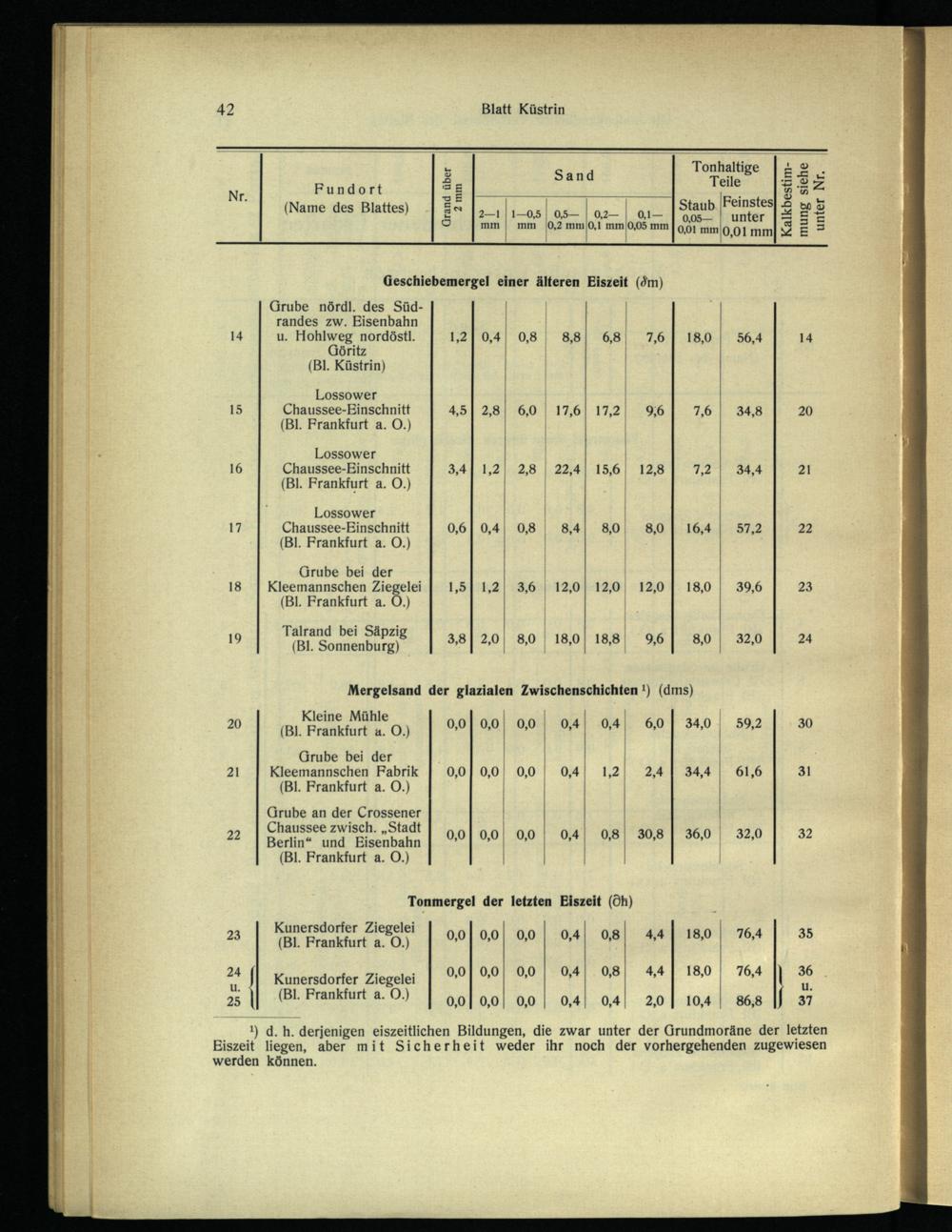Grube bei der| Kleemannschen Fabrik 0,0| 0,0| 0,0| 0,4| 1,2 2,4| 34,4| (Bl. Frankfurt a. O.)||||