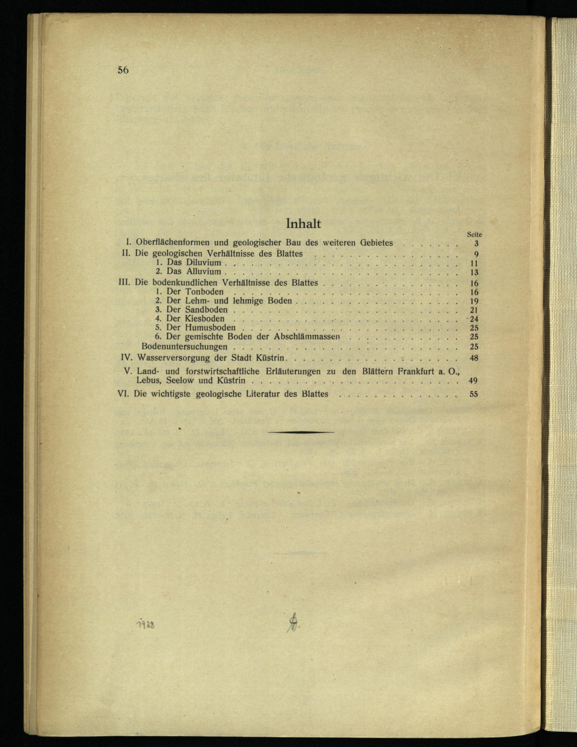 I. Oberflächenformen und geologischer Bau des weiteren Gebietes II. Die g20l0gischen Verhältnisse des Blattes . Das Diluvium. LE A Das Alluvium.. II. Die bodenkundlichen Verhältnisse des Blattes) ‚Der Tonboden:... e.; . Der Lehm- und lehmige E Boden. . Der Sandboden. ; . Der Kiesboden 5. Der Humusboden.. . Der gemischte Boden der Abschlämmassen