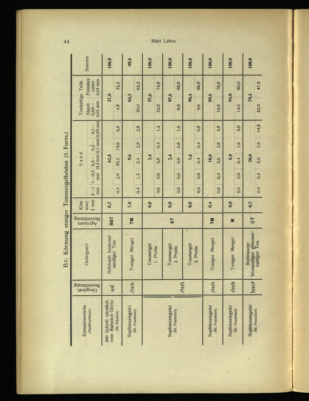 B2:; Körnung einiger Tonmergelböden(1. Forts.)