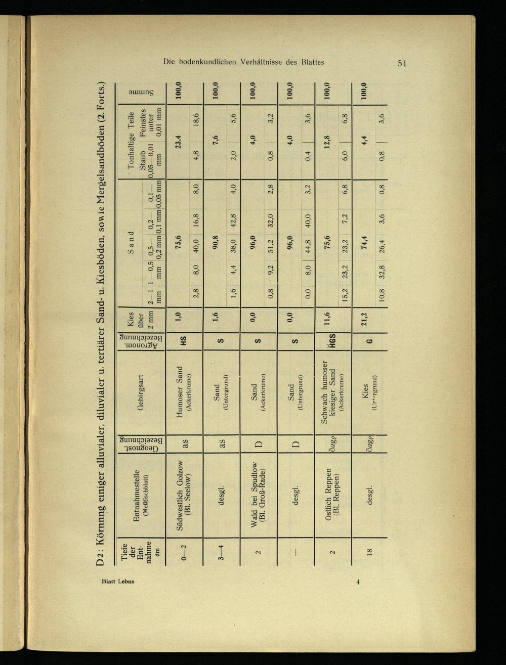 D2: Körnnng einiger alluvialer, diluvialer u. tertiärer Sand- u. Kiesböden, sowie Mergelsandböden(2. Forts.)