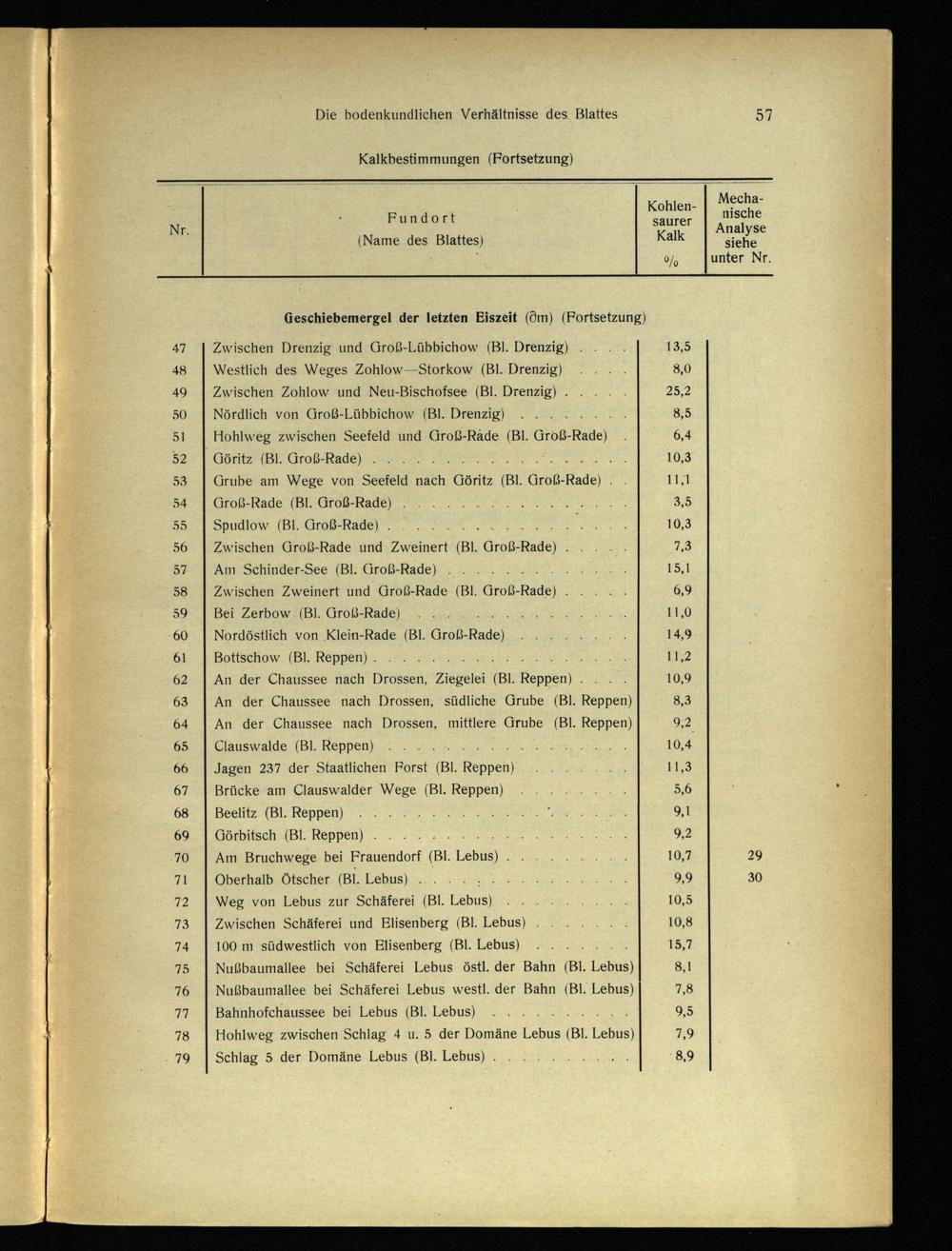 Zwischen Drenzig und Groß- Lübbichow( Bl. Drenzig) Westlich des Weges Zohlow- Storkow( Bl. Drenzig) Zwischen Zohlow und Neu- Bischofsee( Bl. Drenzig) 50 Nördlich von Groß- Lübbichow( Bl. Drenzig)