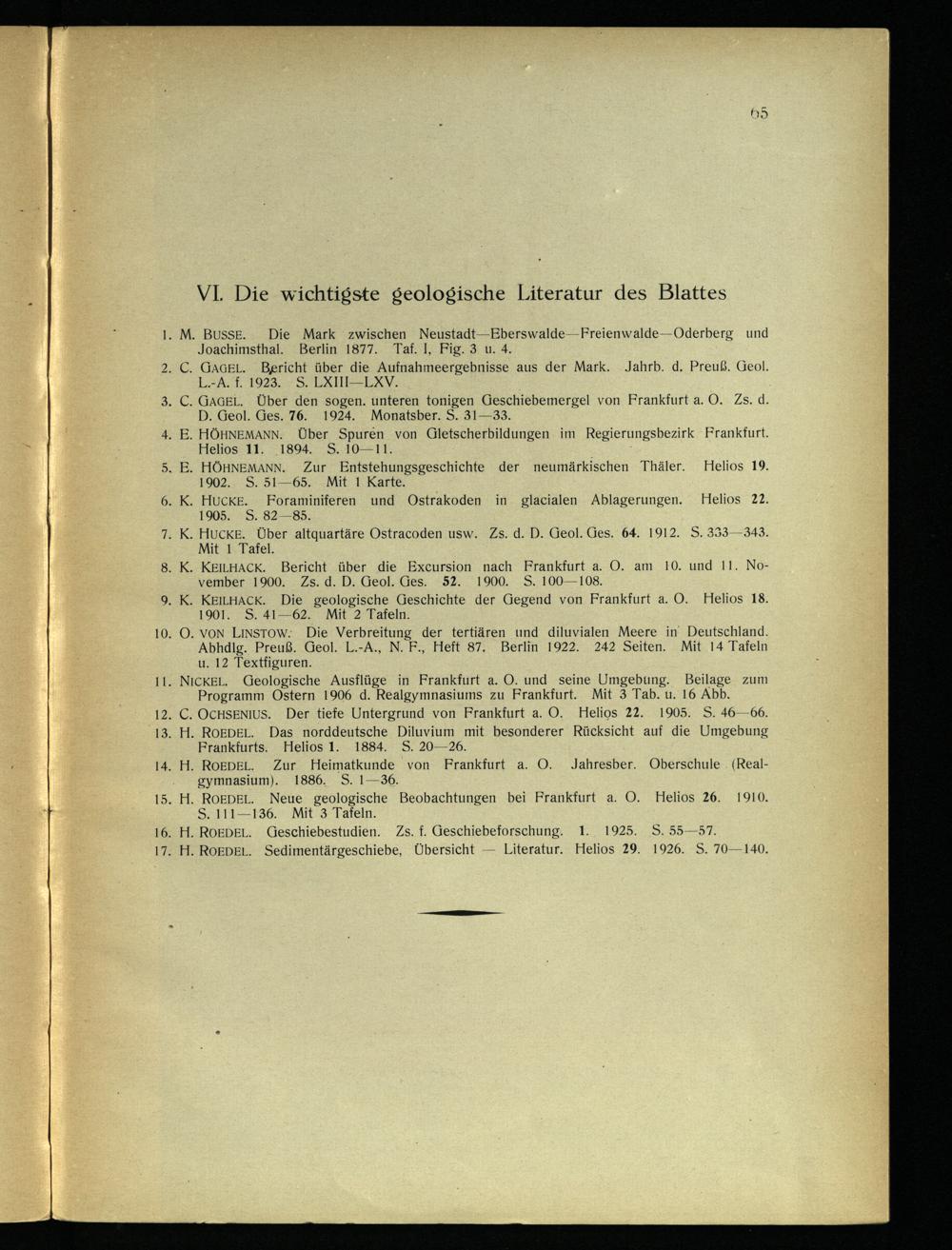 15. H. ROEDEL. Neue geologische Beobachtungen bei Frankfurt a. O. Helios 26. S. 111-136. Mit 3 Tafeln.