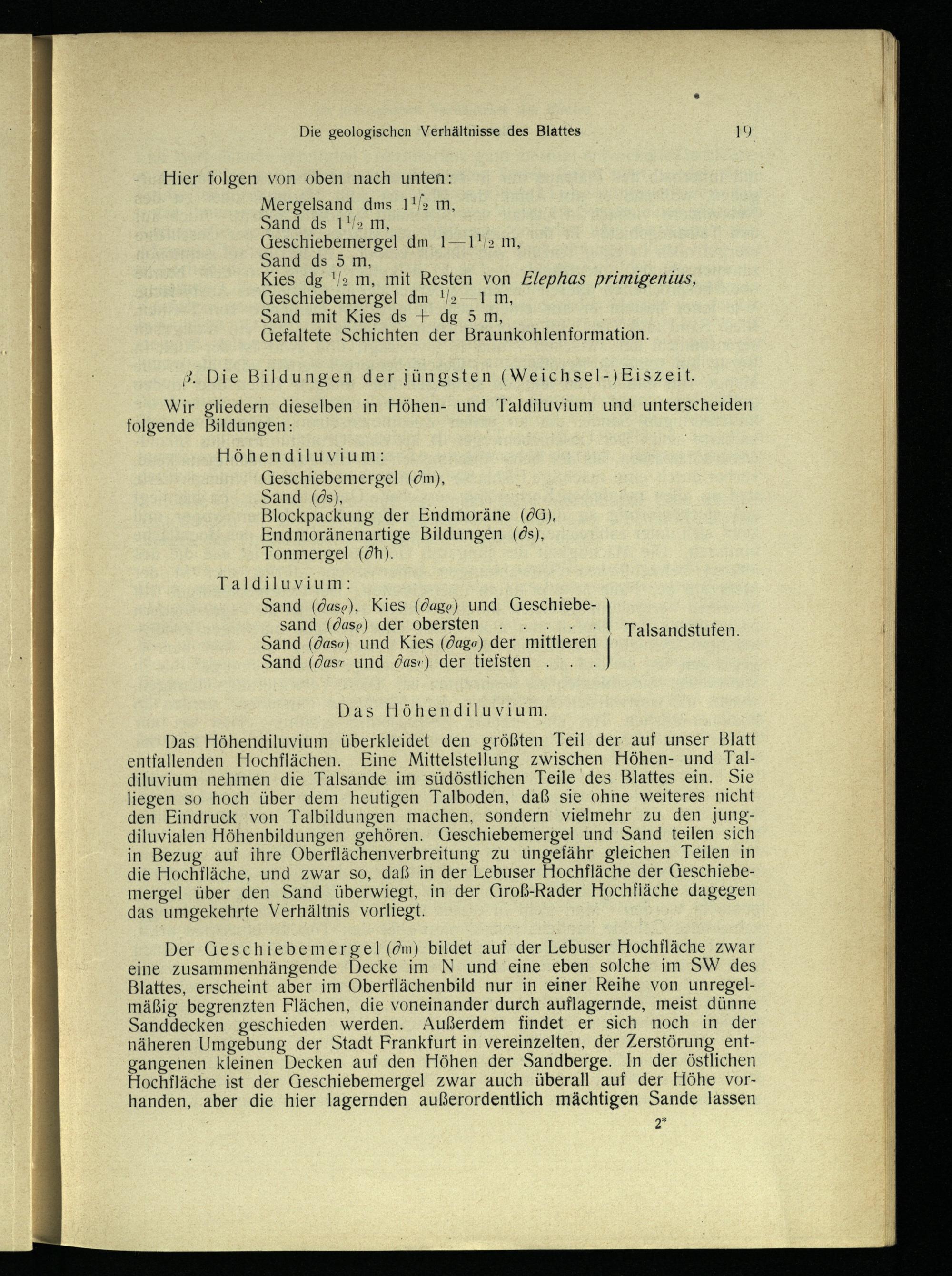 Wir gliedern dieselben in. Höhen- und Taldiluvium und unterscheiden folgende Bildungen: