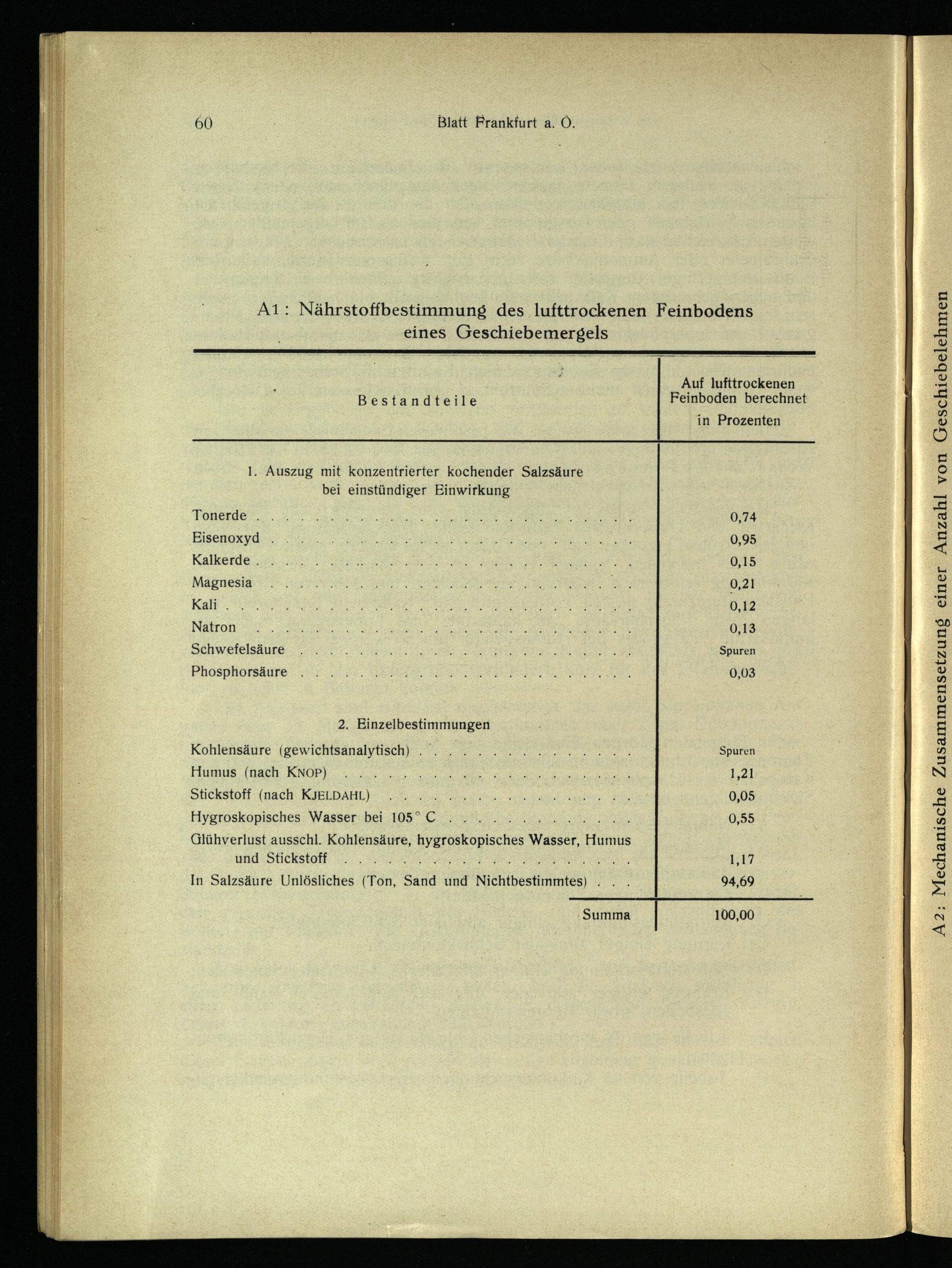 1. Auszug mit konzentrierter kochender Salzsäure bei einstündiger Einwirkung Tonerde. Eisenoxyd Kalkerde.