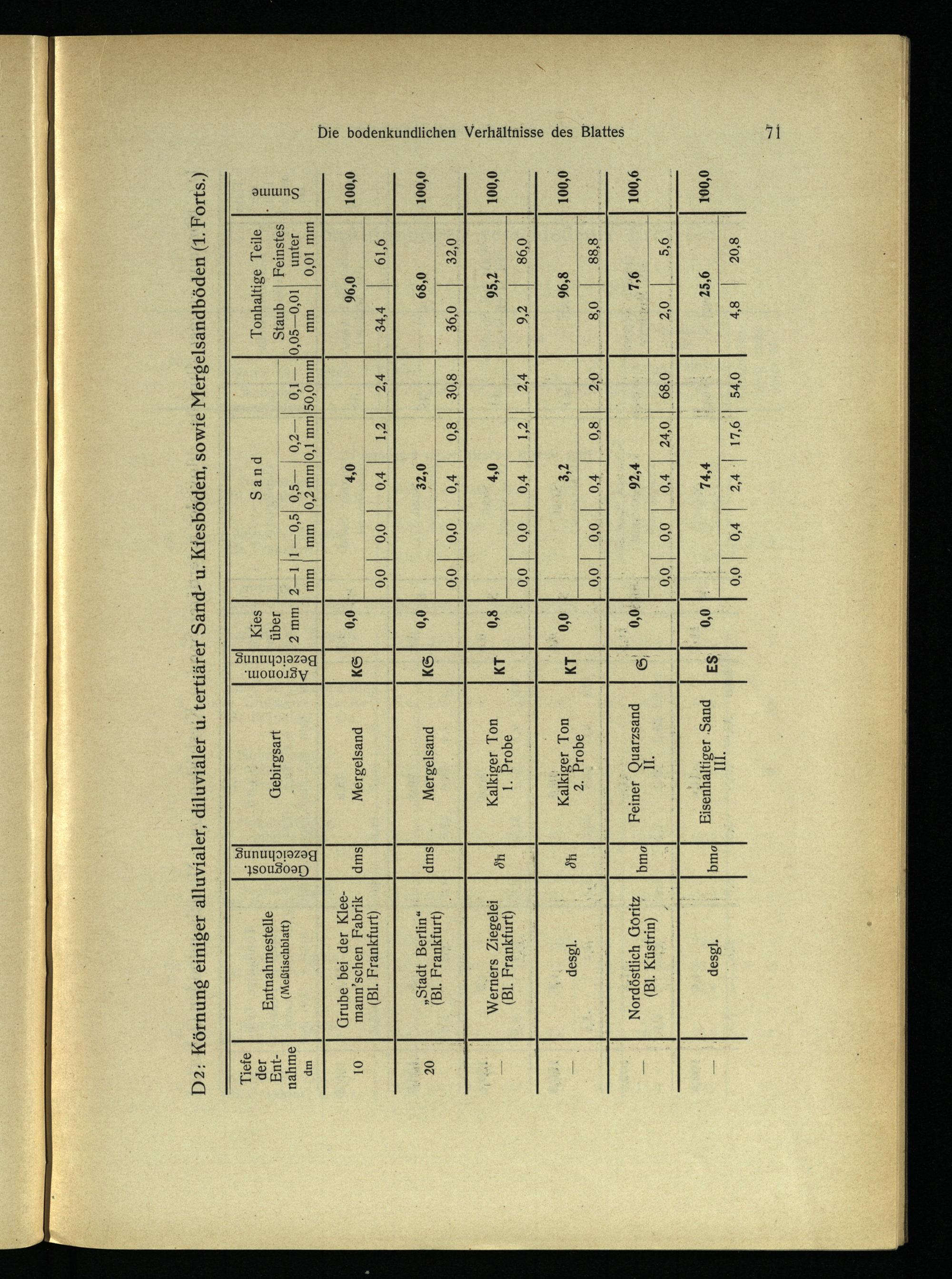 D2: Körnung einiger alluvialer, diluvialer u. tertiärer Sand- u. Kiesböden, sowie Mergelsandböden(1. Forts.)