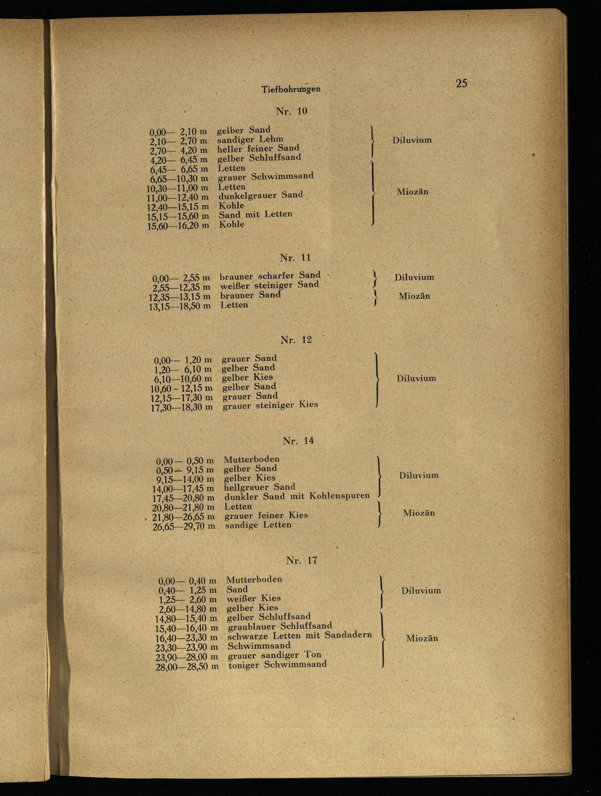 grauer Schwimmsand Letten dunkelgrauer Sand Kohle