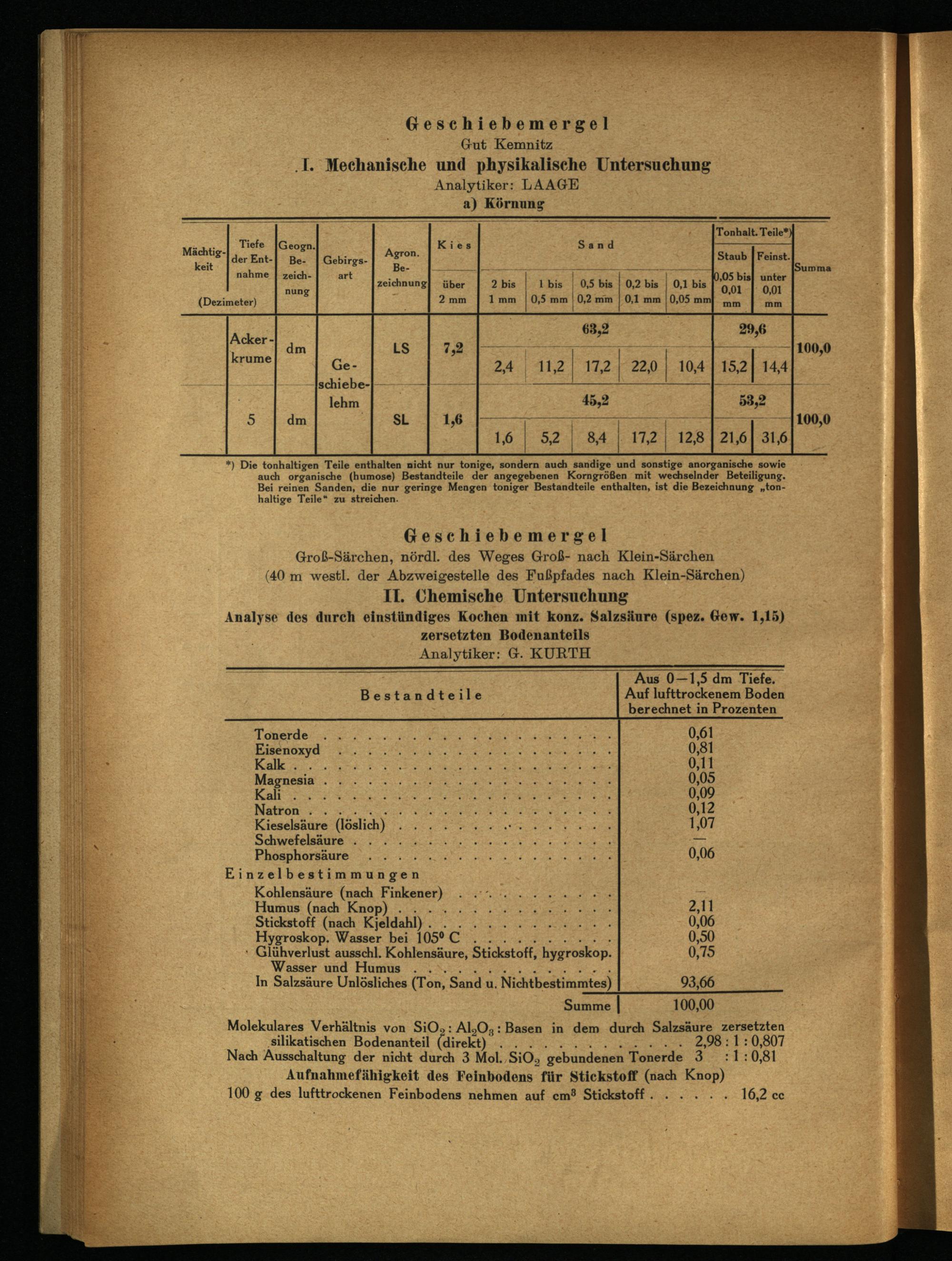 Geschiebemergel Gut Kemnitz ‚TI. Mechanische und physikalische Untersuchung Analytiker: LAAGE a) Körnung