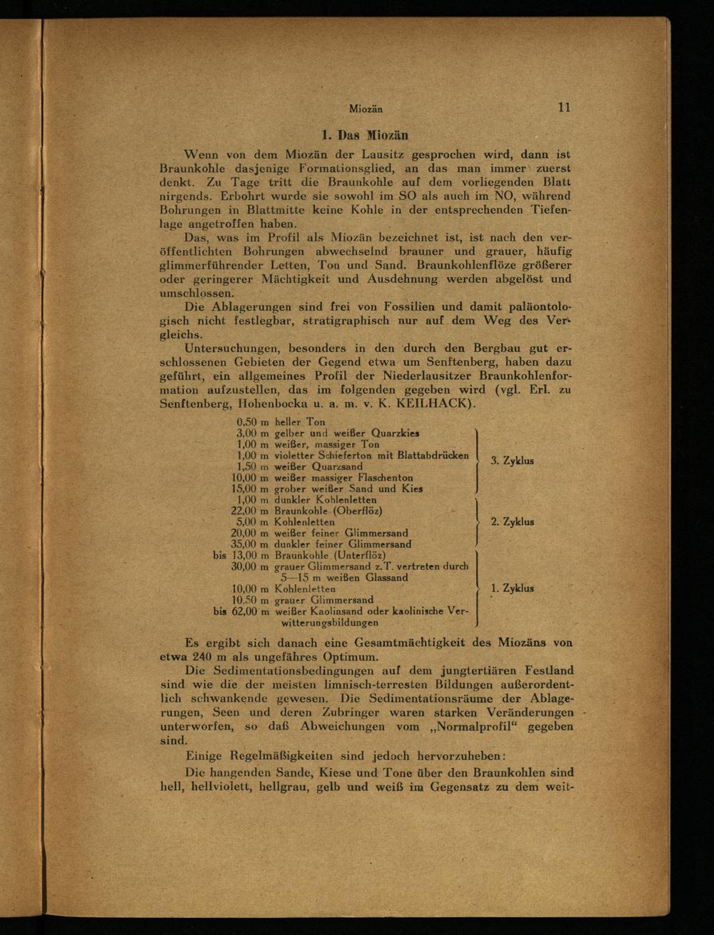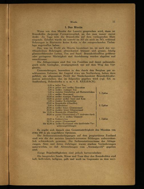 Untersuchungen, besonders in den‘durch den Bergbau gut erschlossenen Gebieten der Gegend etwa um Senftenberg , haben dazu geführt, ein allgemeines Profil der Niederlausitzer Braunkohlenformation aufzustellen, das im folgenden gegeben wird(vgl. Erl. zu