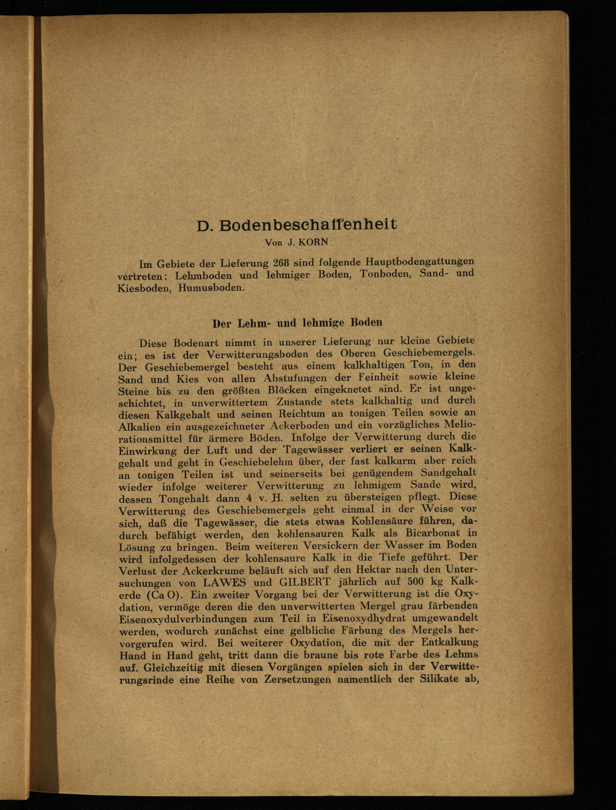 'D. Bodenbeschaffenheit Von J. KORN| Im Gebiete der Lieferung 268 sind folgende Hauptbodengattungen
