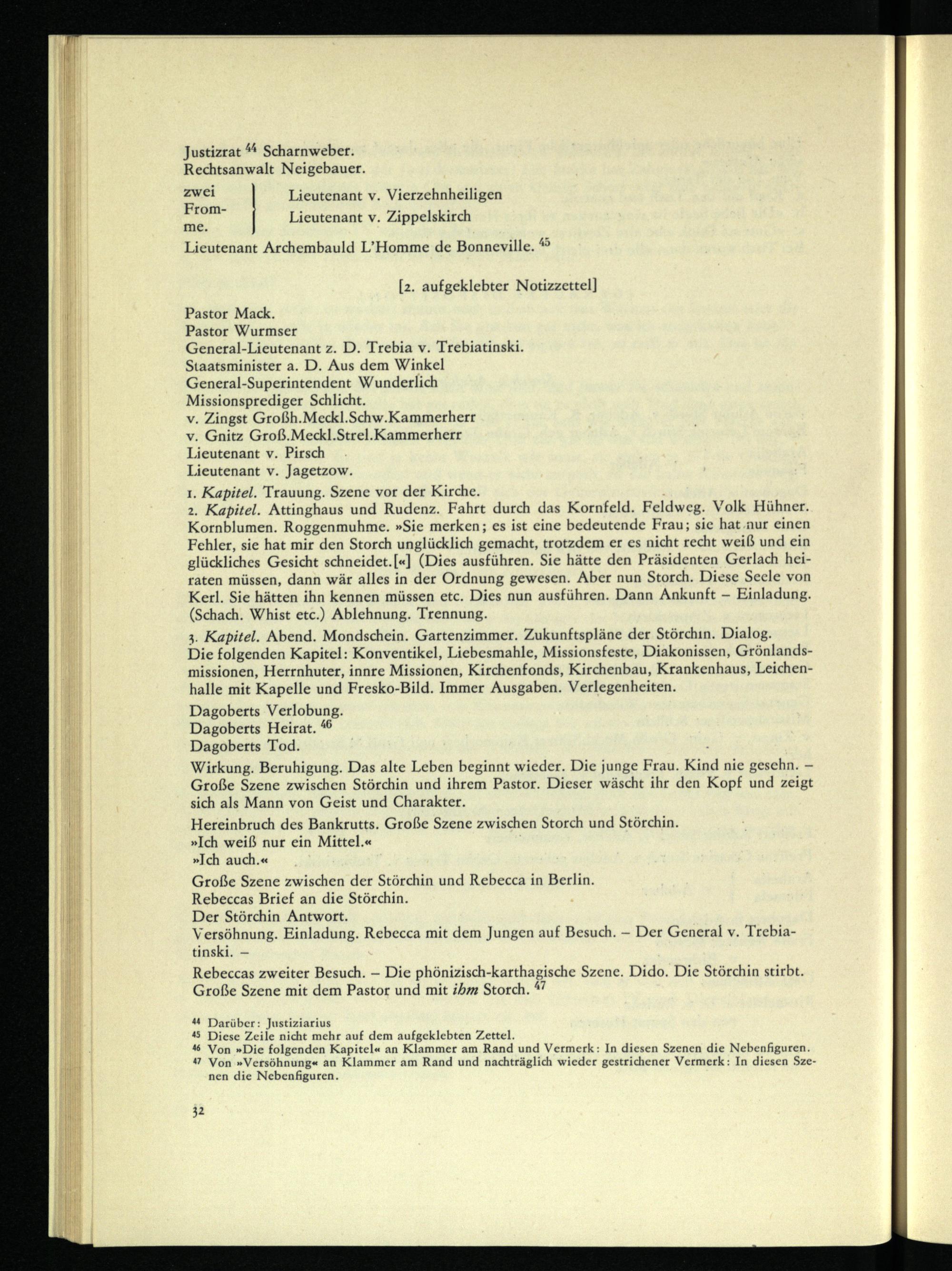 44 Von »Die folgenden Kapitel« an Klammer am Rand und Vermerk: In diesen Szenen die Nebenfiguren. 47 Von »Versöhnung« an Klammer am Rand und nachträglich wieder gestrichener Vermerk: In diesen Szenen die Nebenfiguren.