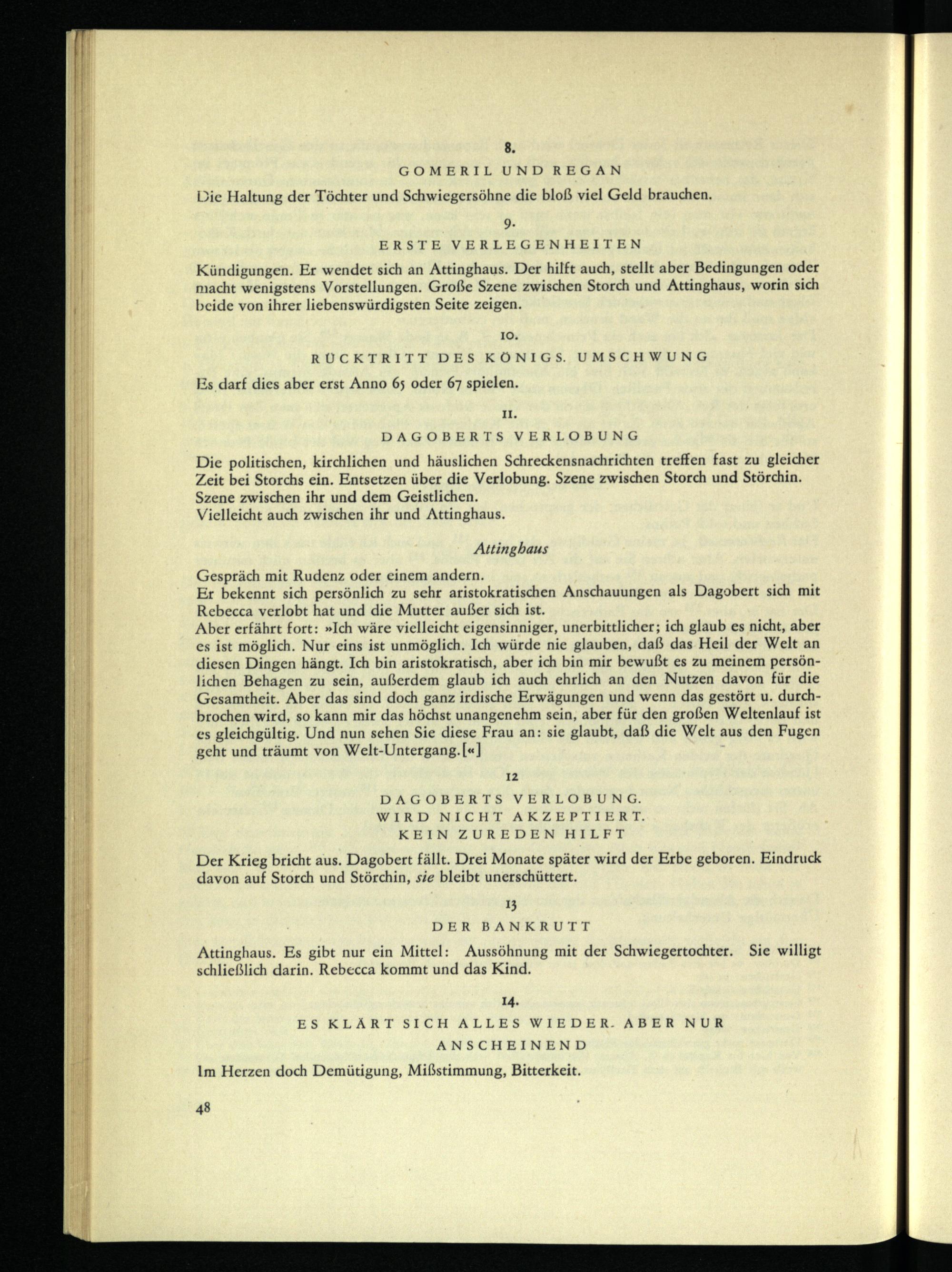 Kündigungen. Er wendet sich an Attinghaus. Der hilft auch, stellt aber Bedingungen oder macht wenigstens Vorstellungen. Große Szene zwischen Storch und Attinghaus, worin sich beide von ihrer liebenswürdigsten Seite zeigen.
