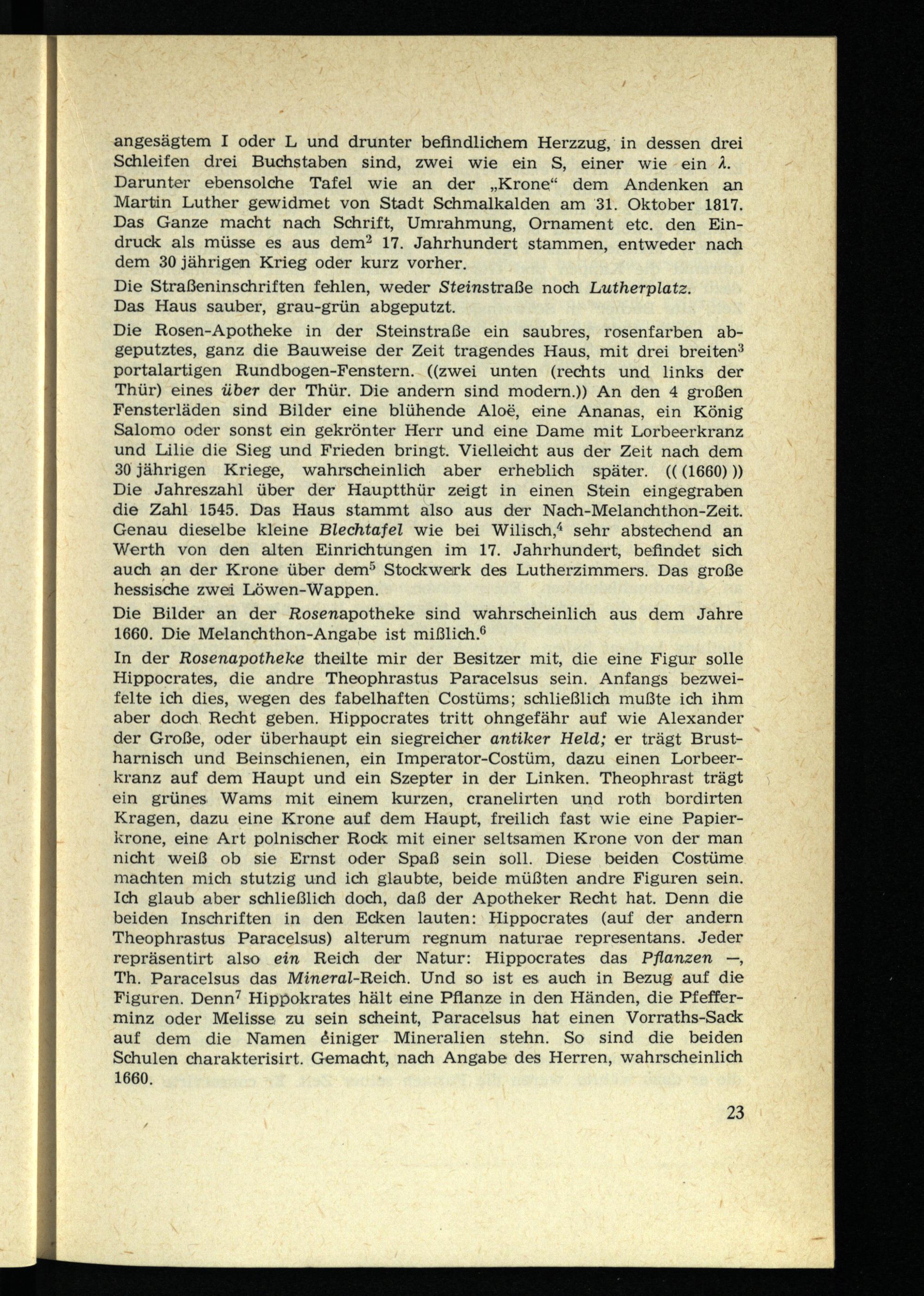 Die Bilder an der Rosenapotheke sind wahrscheinlich aus dem Jahre 1660. Die Melanchthon-Angabe ist mißlich. 6