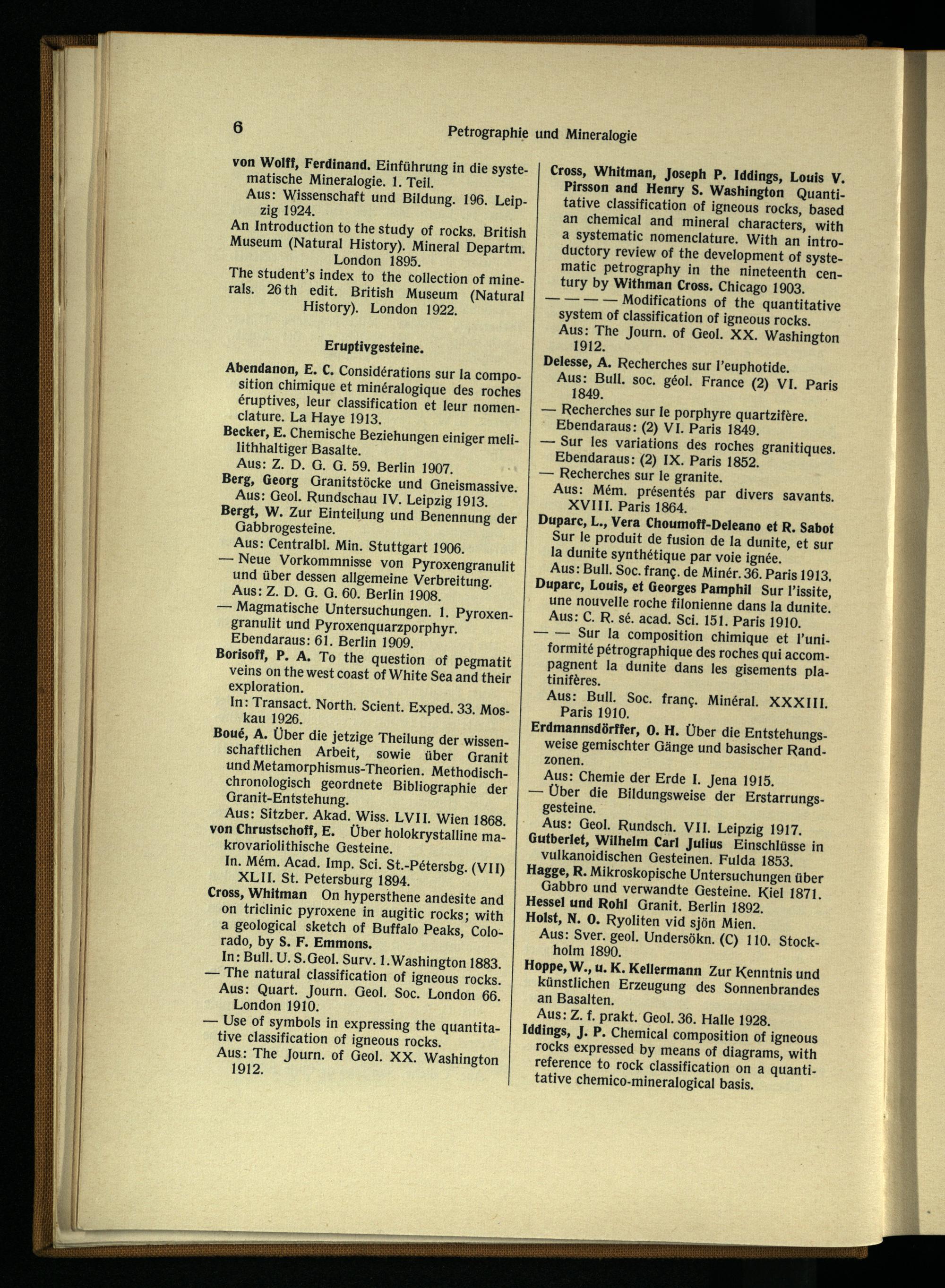 Abendanon, E. C. Considérations sur la composition chimique et minéralogique des roches éruptives, leur classification et leur nomenclature. La Haye 1913.