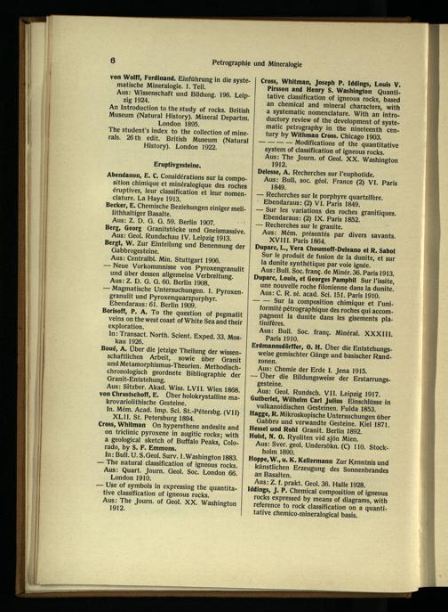 Aus: Geol . Rundsch. VII. Leipzig 1917. Gutberiet, Wilhelm Carl Julius Einschlüsse in vulkanoidischen Gesteinen. Fulda 1853. Hagge, R. Mikroskopische Untersuchungen über Gabbro und verwandte Gesteine. Kiel 1871. Hessel und Rohl Granit. Berlin 1892.