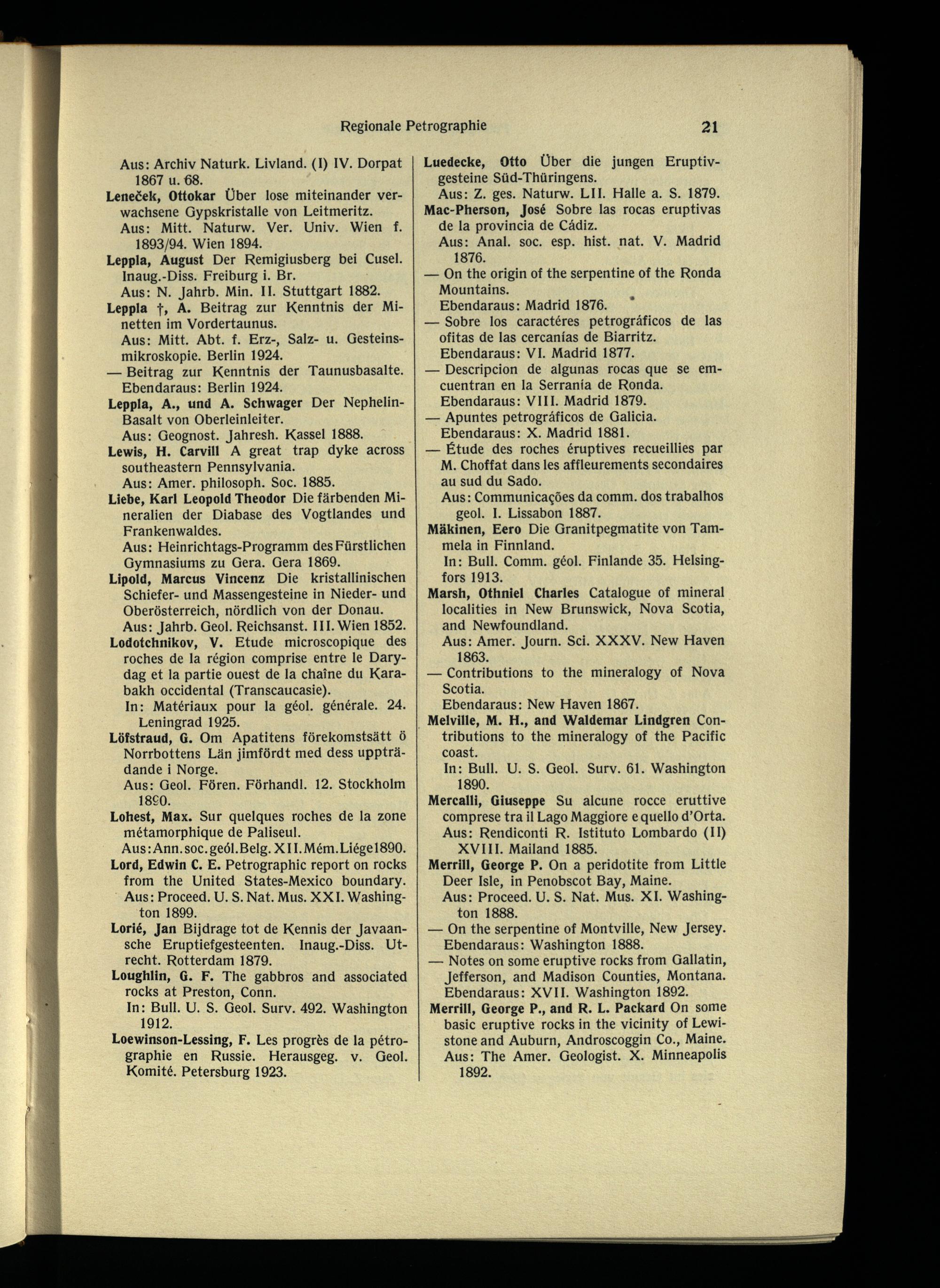 Aus : Ann. soc. geól. Belg. XII. Mém. Liégel 890. Lord, Edwin C. E. Petrographie report on rocks from the United States -Mexico boundary. Aus : Proceed. U. S. Nat. Mus. XXL Washington 1899.