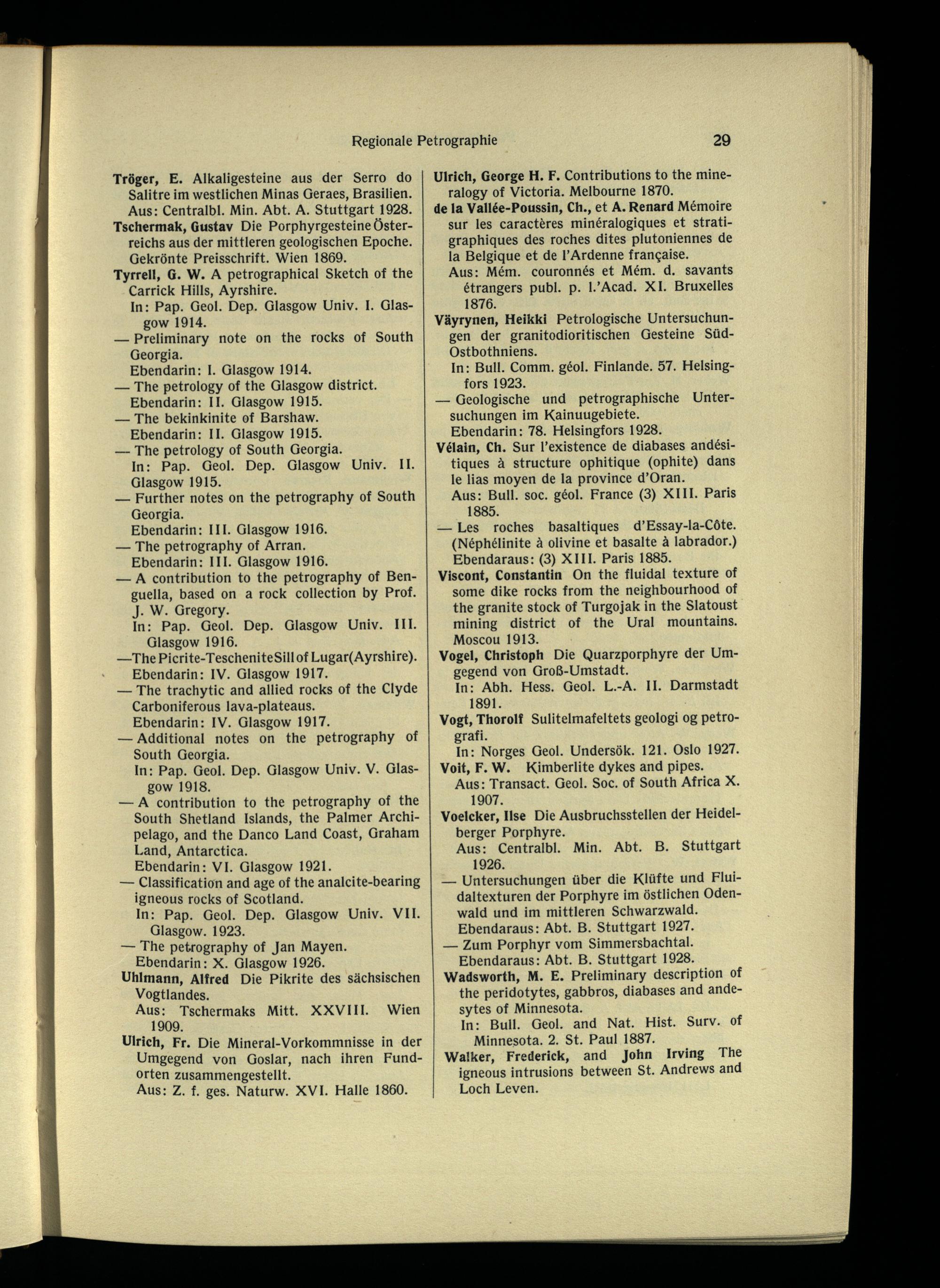 Ulrich, George H. F. Contributions to the mineralogy of Victoria. Melbourne 1870. de la Vallée-Poussin, Ch., et A. Renard Mémoire sur les caractères minéralogiques et strati- graphiques des roches dites plutoniennes de la Belgique et de l’Ardenne française.