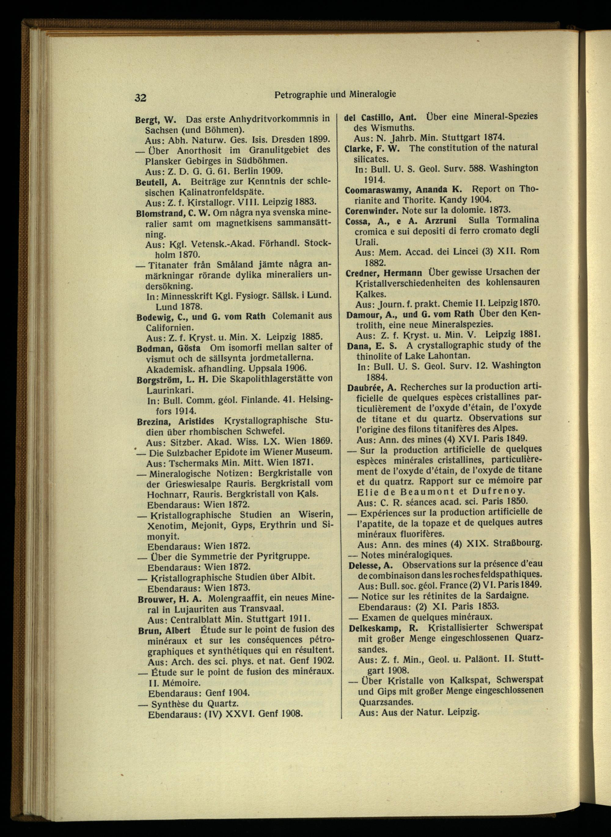 Coomaraswamy, Ananda K. Report on Tho- rianite and Thorite. Kandy 1904. Corenwinder. Note sur la dolomie. 1873.