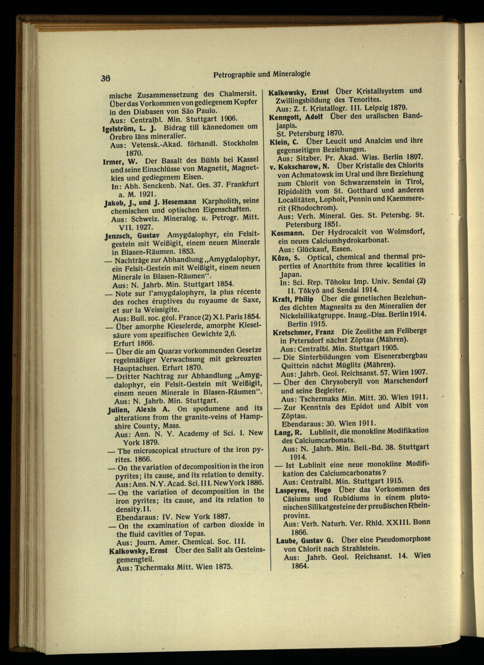 Jenzsch, Gustav Amygdalophyr, ein Felsit- gestein mit Weißigit, einem neuen Minerale in Blasen-Räumen. 1853.