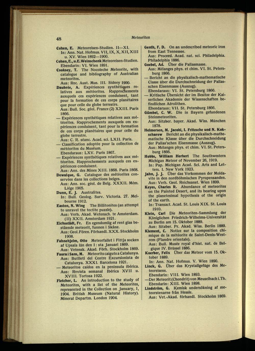 Aus: Rec. Aust. Mus. III. Sidney 1900- Daubrée , A. Expériences synthétiques relatives aux météorites. Rapprochements auxquels ces expériences conduisent, tant pour la formation de ces corps planétaires que pour celle du globe terrestre.