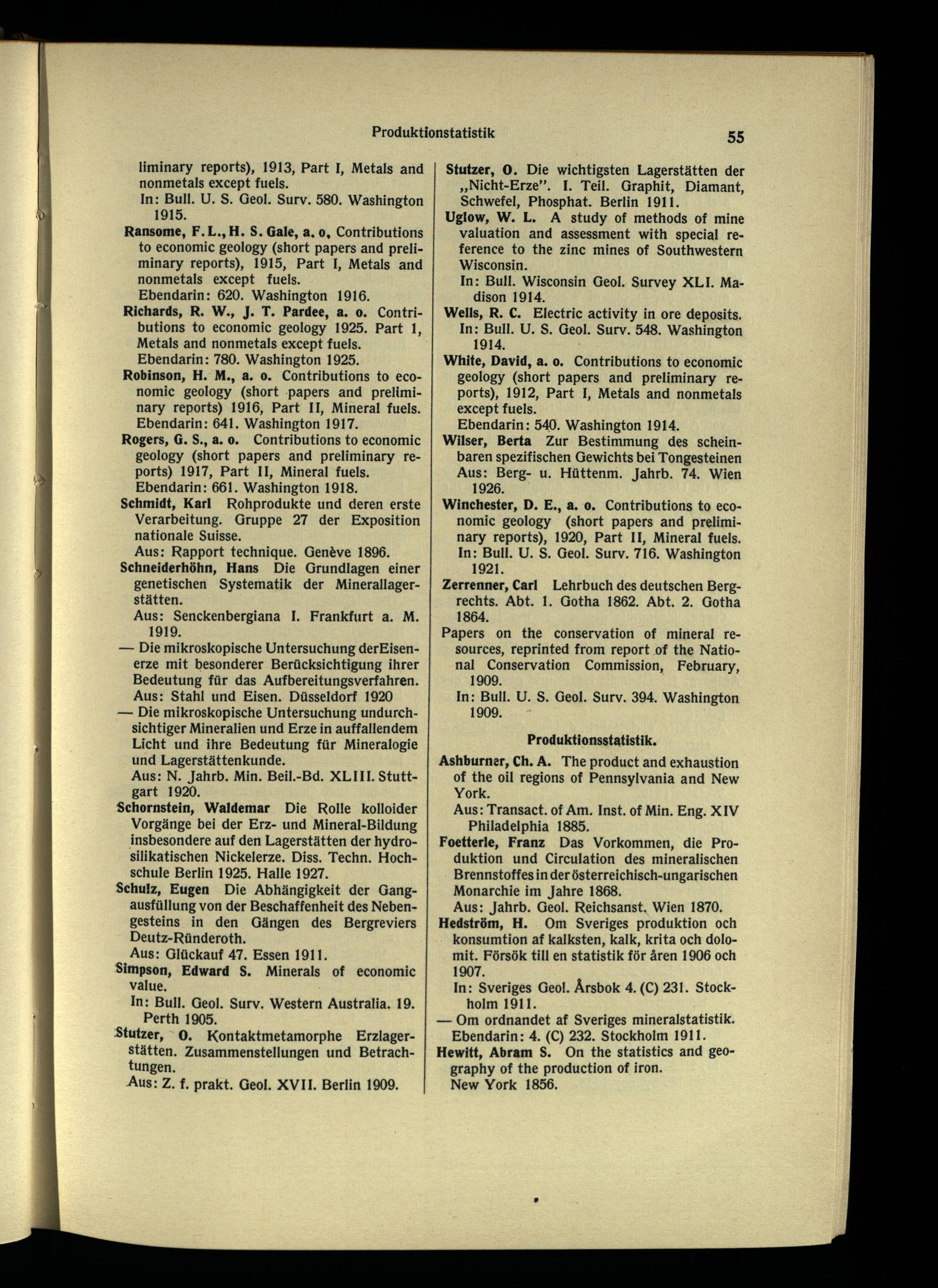 Ebendann: 620. Washington 1916. Richards, R. W., J. T. Pardee, a. o. Contributions to economic geology 1925. Part 1, Metals and nonmetals except fuels. Ebendann: 780. Washington 1925.