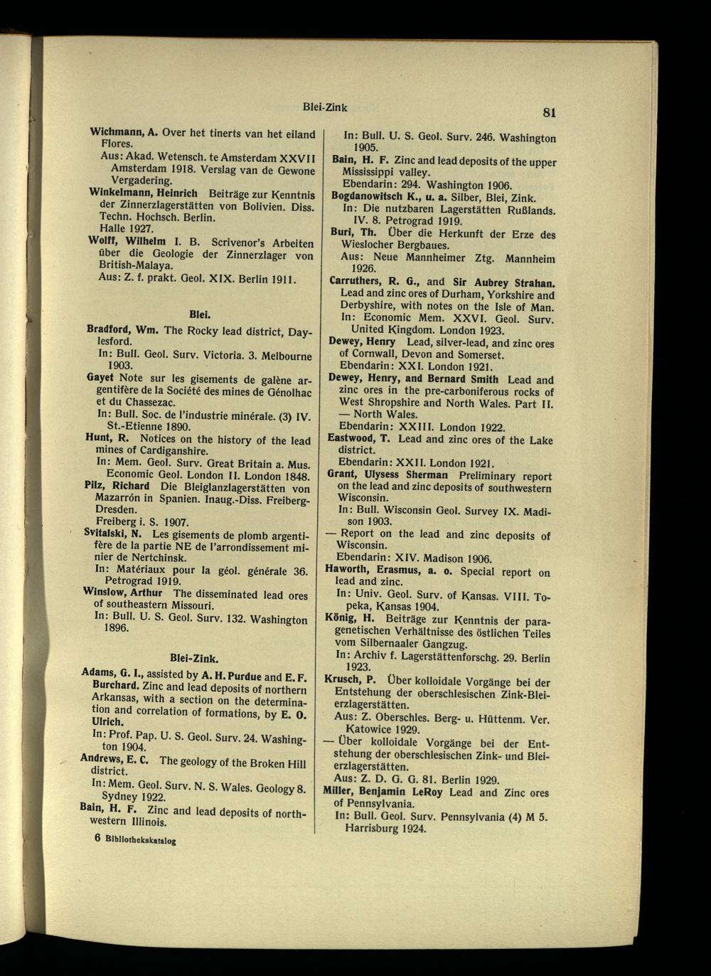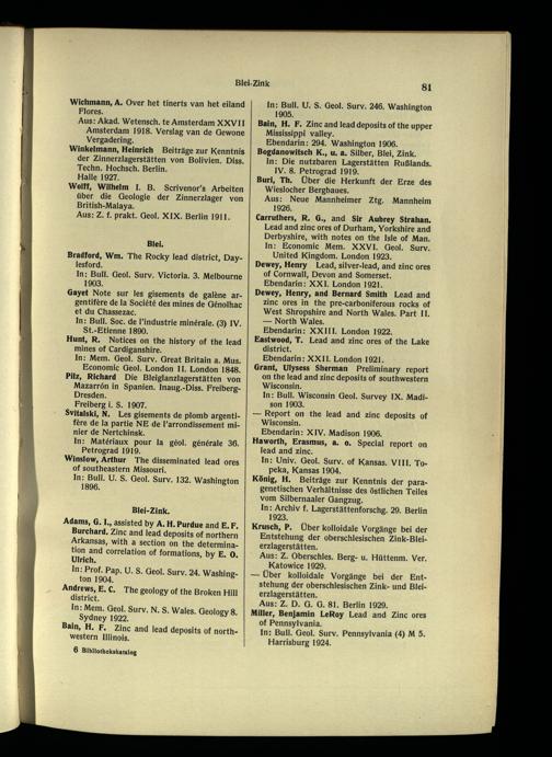 Ebendann: 294. Washington 1906. Bogdanowitsch K., u. a. Silber, Blei, Zink.