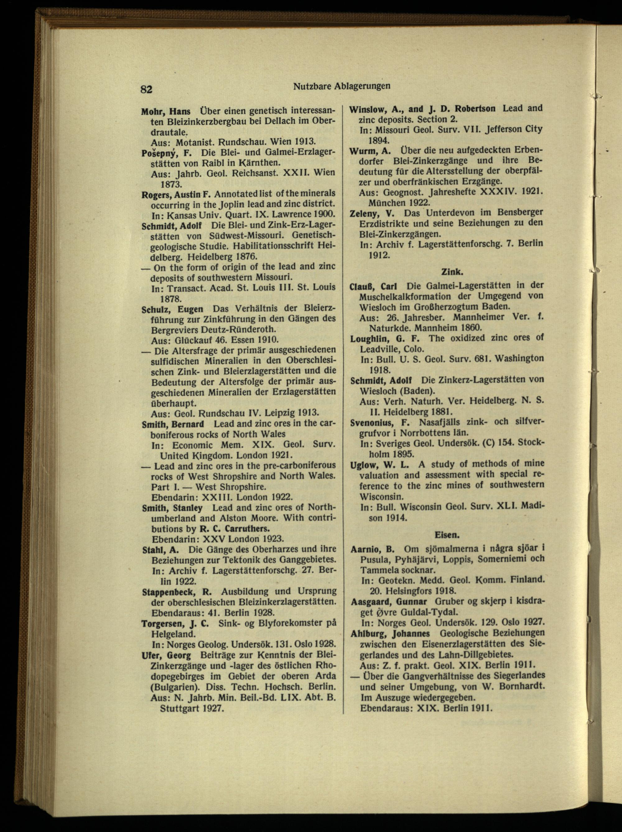 Stappenbeck, R. Ausbildung und Ursprung der oberschlesischen Bleizinkerzlagerstätten. Ebendaraus: 41. Berlin 1928.