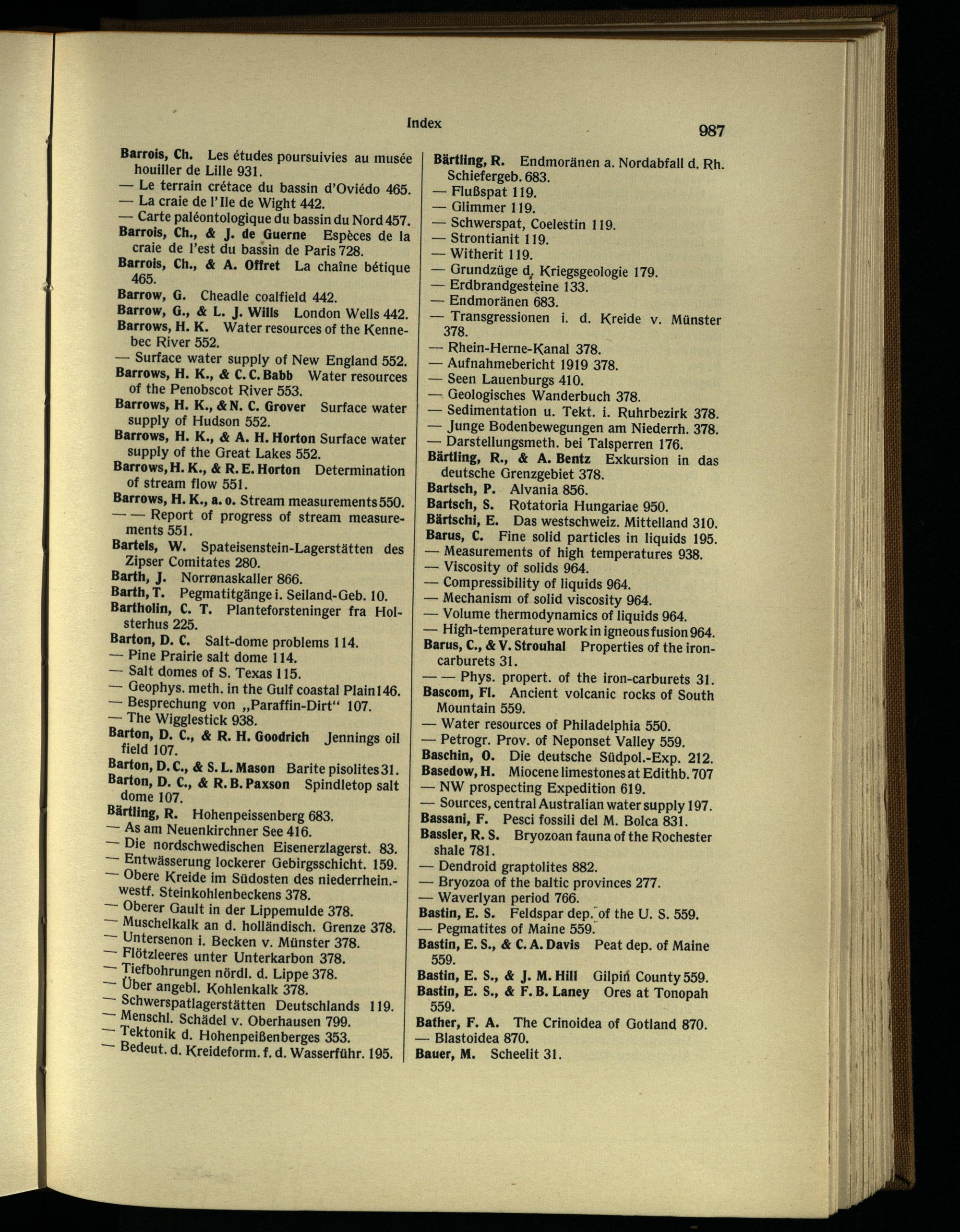Bartsch, S. Rotatoria Hungariae 950. Bärtschi, E. Das westschweiz. Mittelland 310. Barus, C. Fine solid particles in liquids 195.