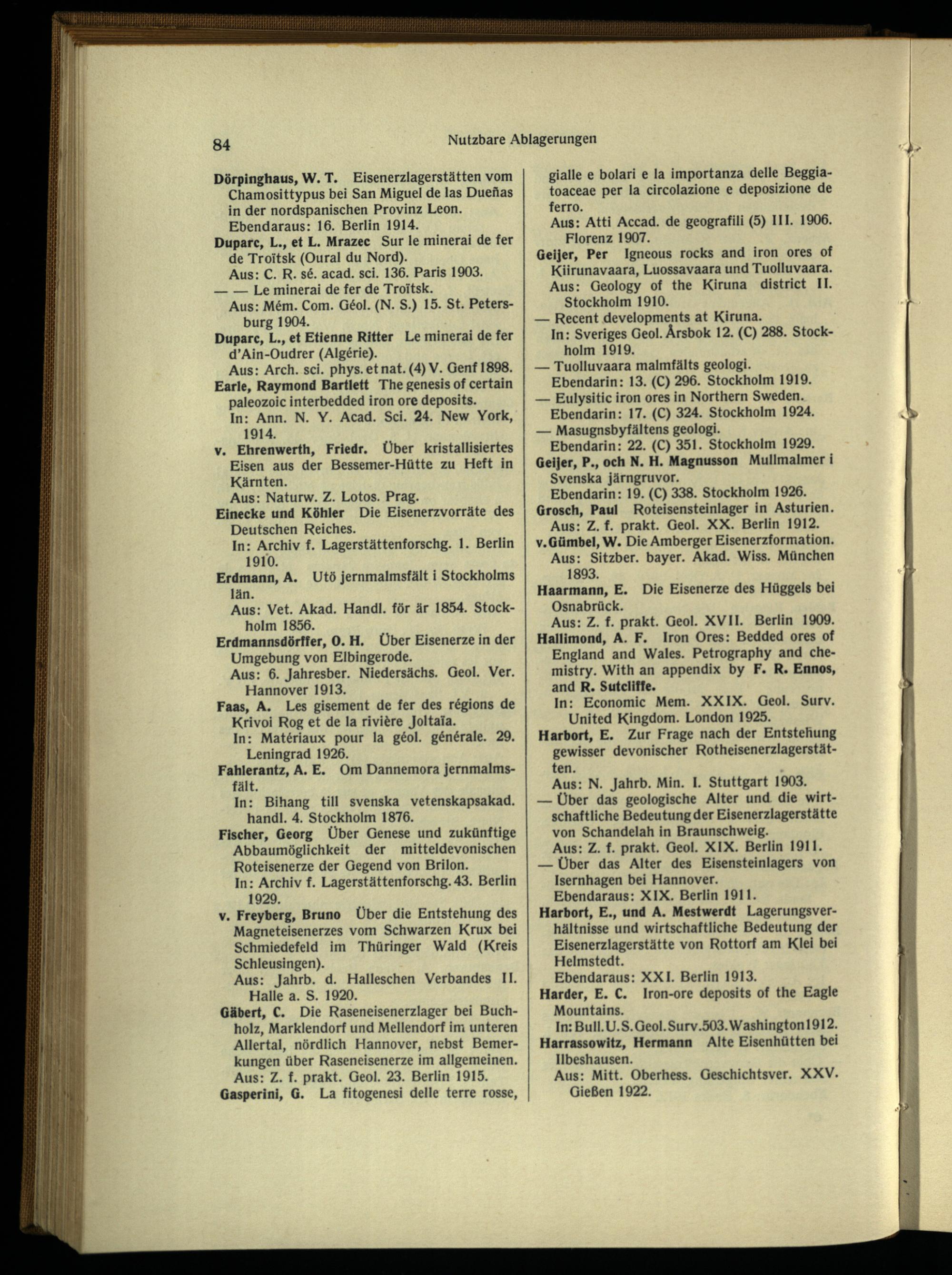 Aus: Arch. sci. phys.etnat. (4)V. Genf 1898. Earle, Raymond Bartlett The genesis of certain paleozoic interbedded iron ore deposits.