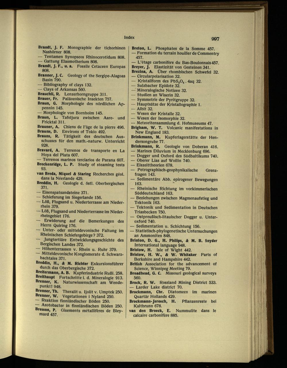 Breitermann, A. B. Kupferindustrie Rußl . 258. Breithaupt Fortschritte i. d. Mineralogie 913. Brenner, K. Naturwissenschaft am Wendepunkt! 948.
