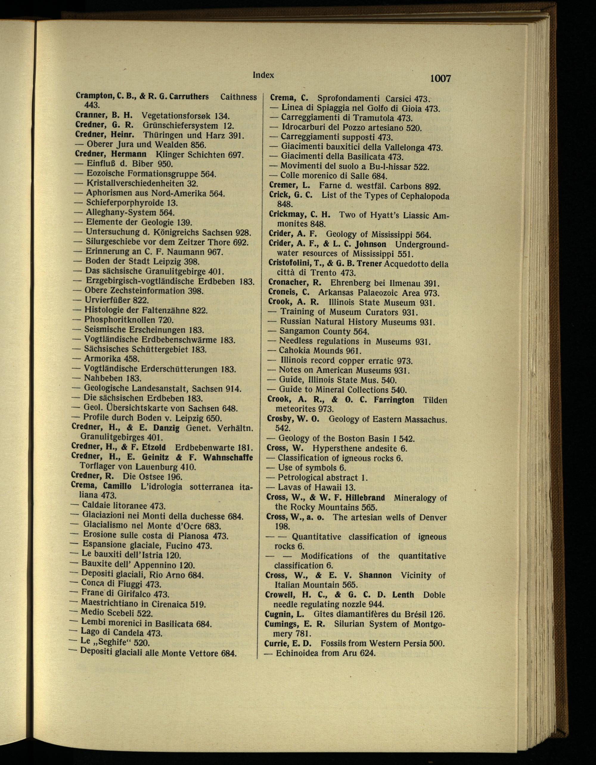 Cronacher, R. Ehrenberg bei Ilmenau 391. Croneis, C. Arkansas Palaeozoic Area 973. Crook, A. R. Illinois State Museum 931.