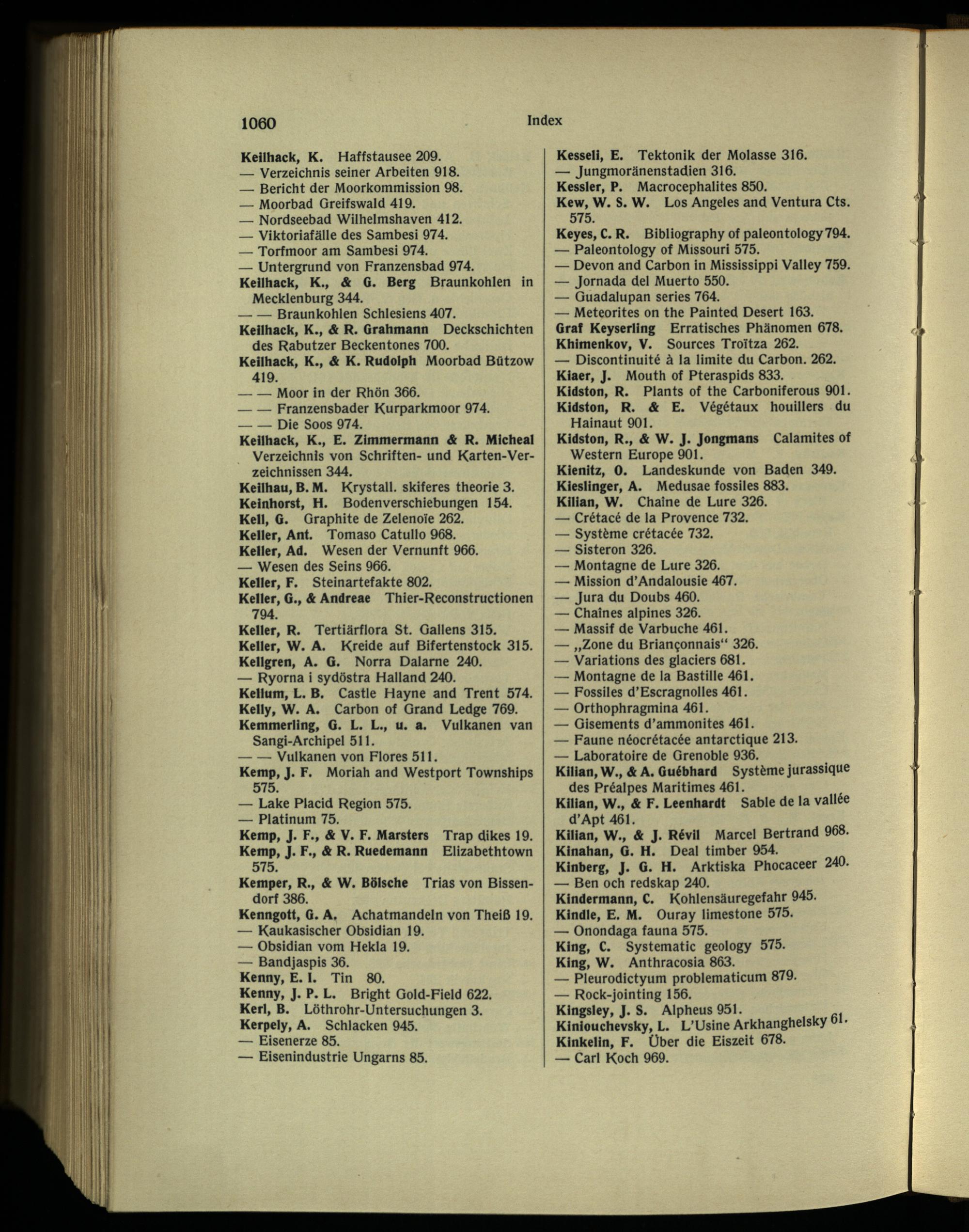 Keilhau, B. M. Krystall. skiferes theorie 3. Keinhorst, H. Bodenverschiebungen 154. Kell, G. Graphite de Zelenoie 262.