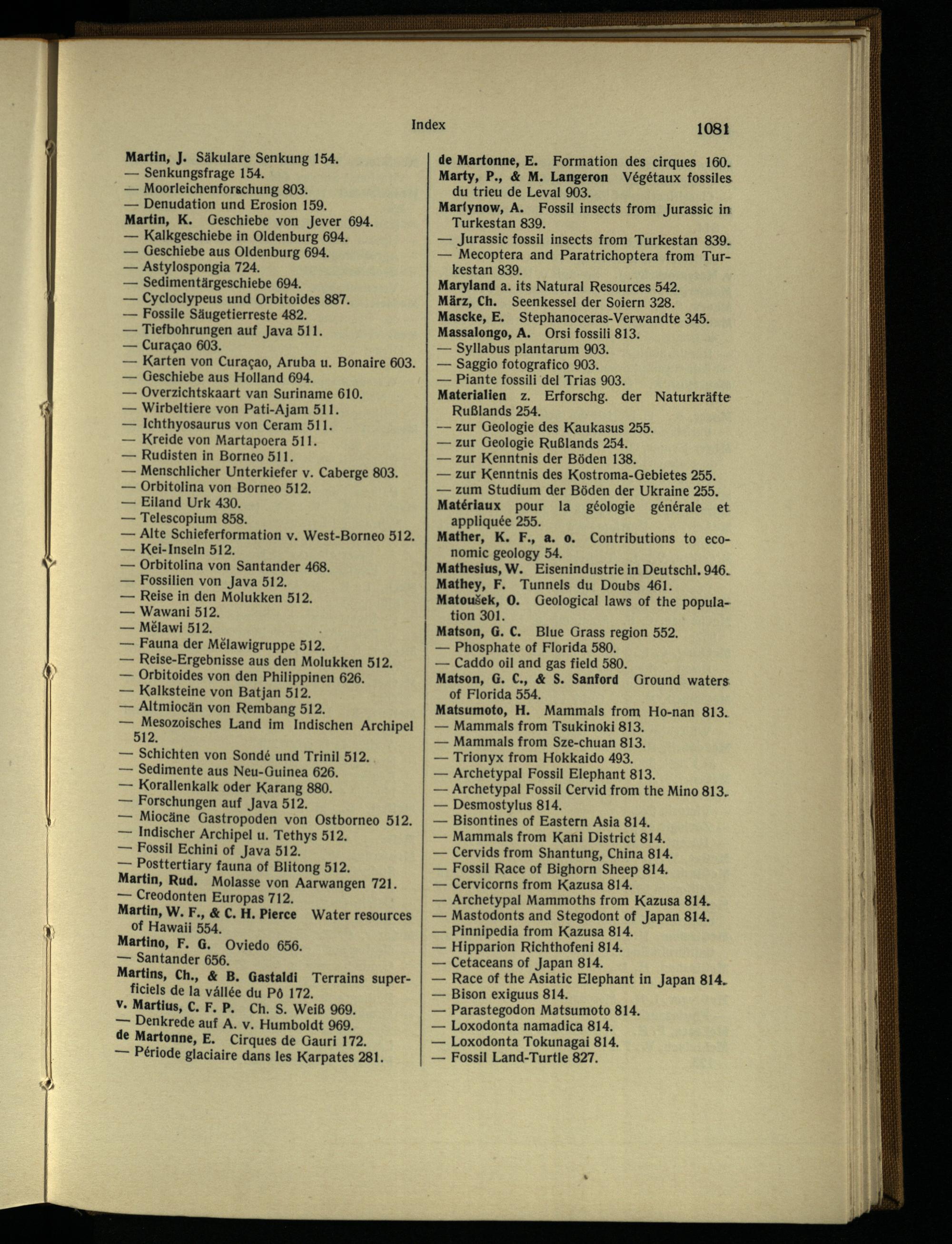 de Martonne, E. Formation des cirques 160. Marty, P., & M. Langeron Végétaux fossiles du trieu de Levai 903.