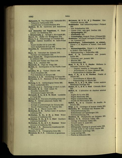 . Matyasovszky, J. Spongi t v. Kis-Lipnik281. Maurer, Fr. Kalke von Waldgirmes 374. Maury, C. J. Paleontology of Trinidad 603. Maussier Assises houillères de Saint-Priest 462.