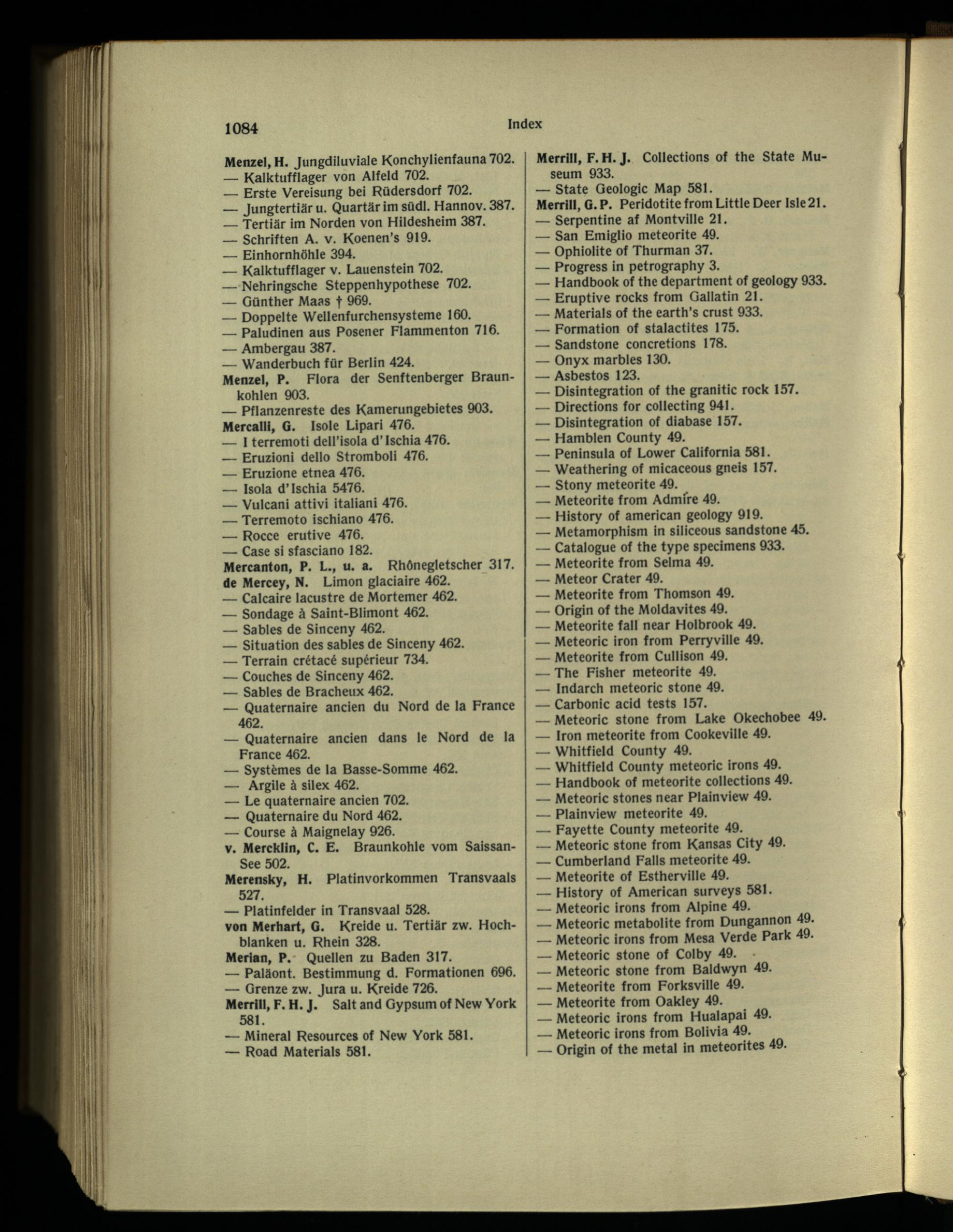 — Pflanzenreste des Kamerungebietes 903. Mercalli, G. Isole Lipari 476.