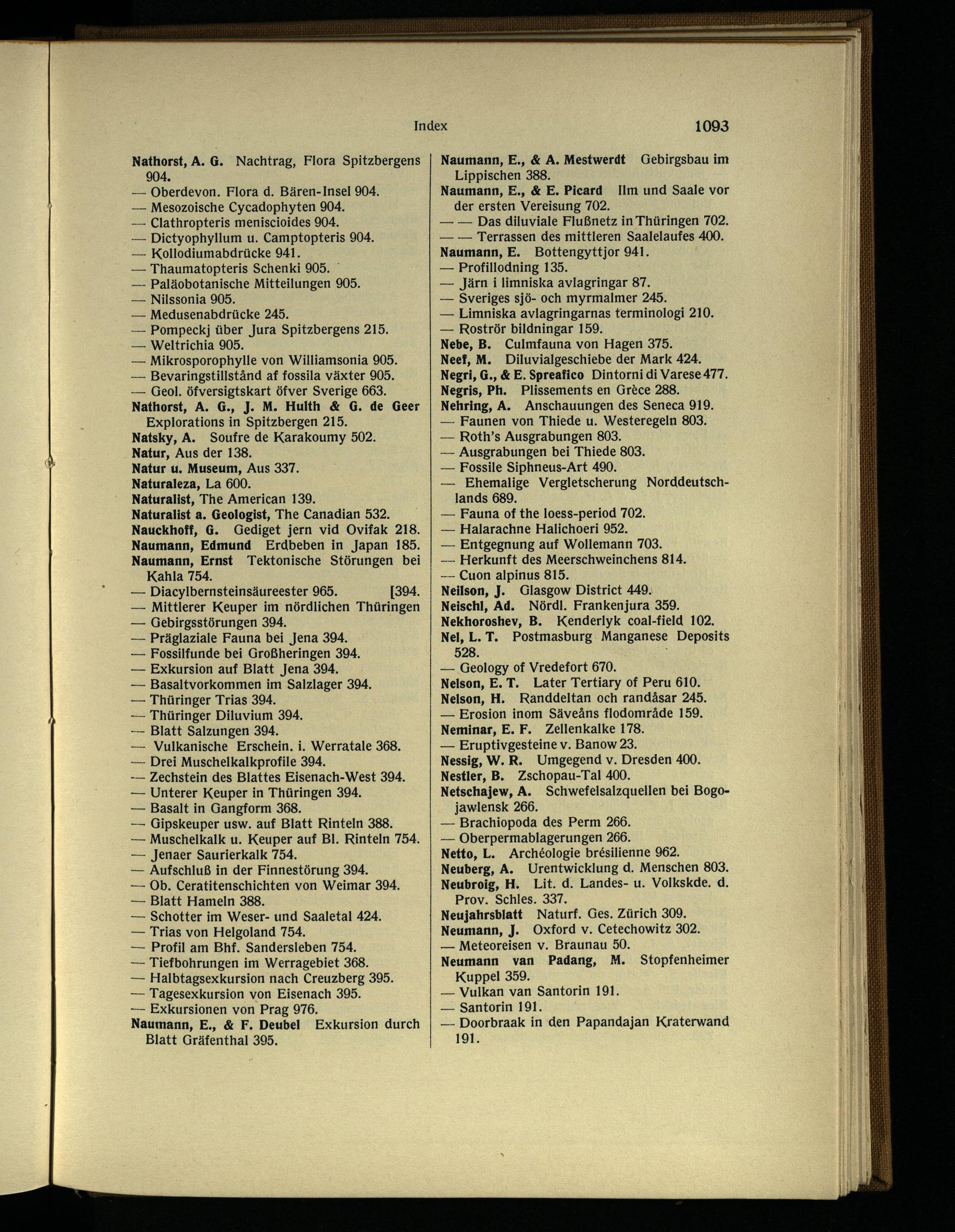 Naturalist a. Geologist, The Canadian 532. Nauckhoff, G. Oediget jern vid Ovifak 218. Naumann, Edmund Erdbeben in Japan 185. Naumann, Ernst Tektonische Störungen bei Kahla 754.