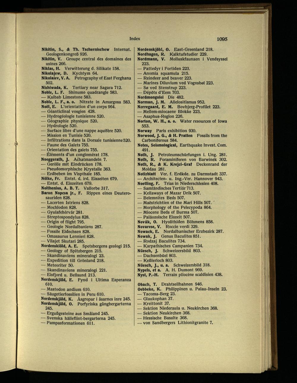 Noth, J. Petroleumschürfungen i. Ung. 281. Noth, R. Foraminiferen von Barwinek 302. Noth, R., & K. Krejci-Graf Deckenrand der Moldau 281.