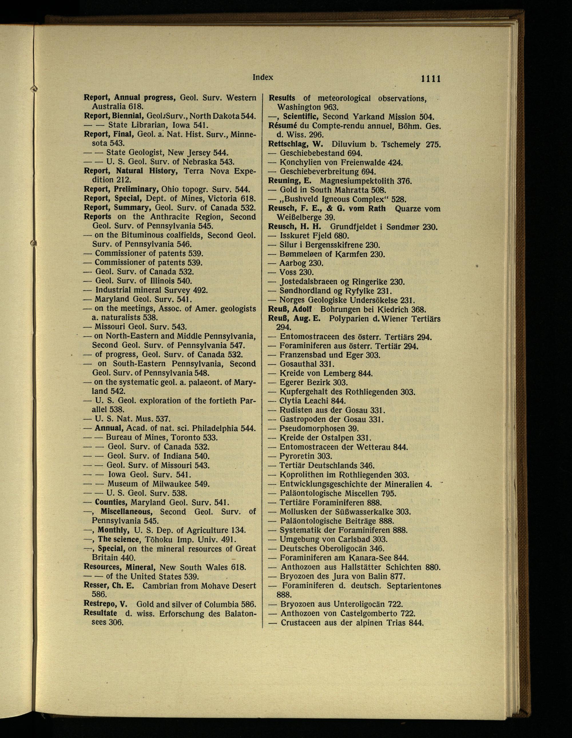 Reuß, Adolf Bohrungen bei Kiedrich 368. Reuß, Aug. E. Polyparien d. Wiener Tertiärs