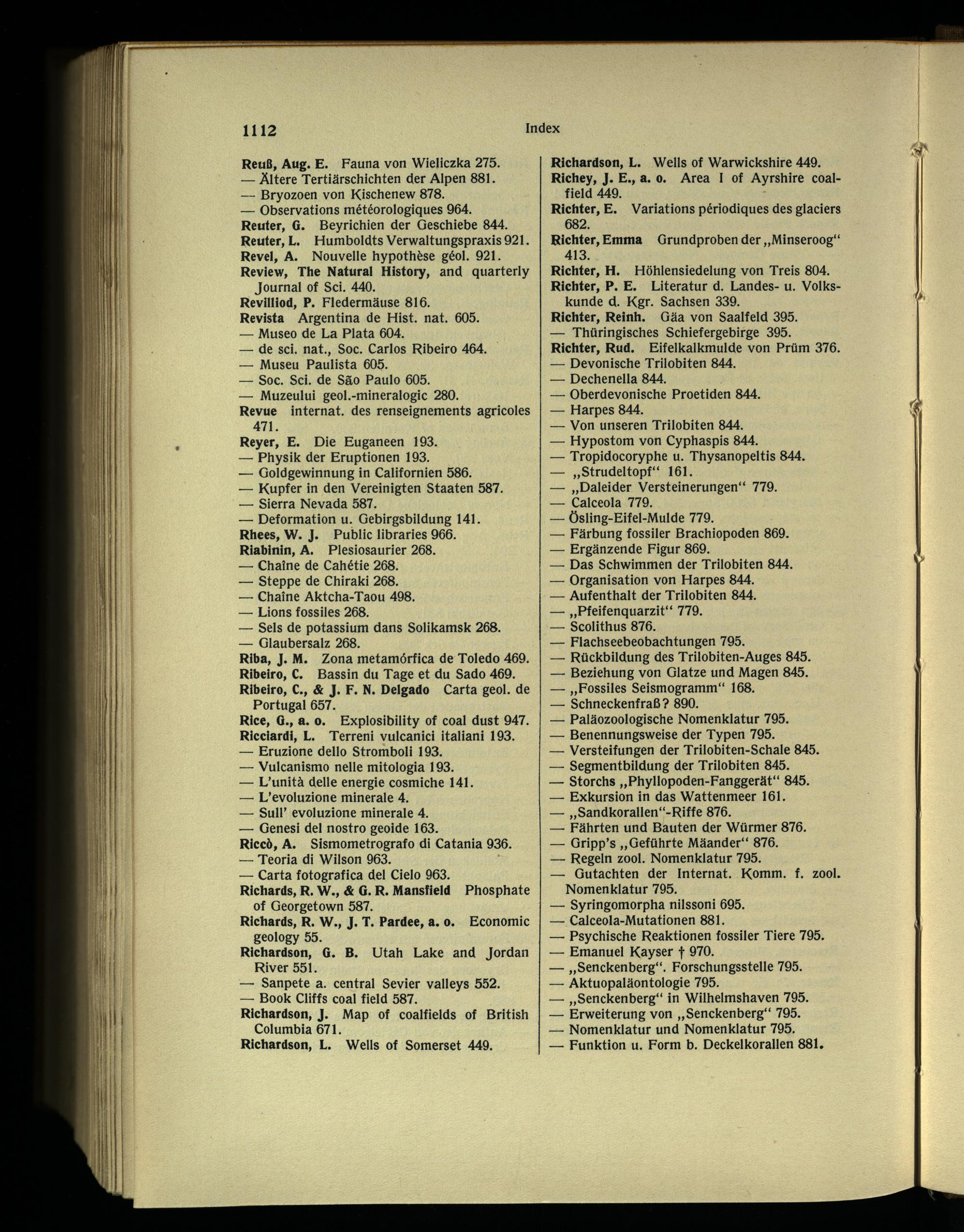 Reuter, G. Beyrichien der Geschiebe 844. Reuter, L. Humboldts Verwaltungspraxis 921. Revel, A. Nouvelle hypothèse géol. 921. Review, The Natural History, and quarterly