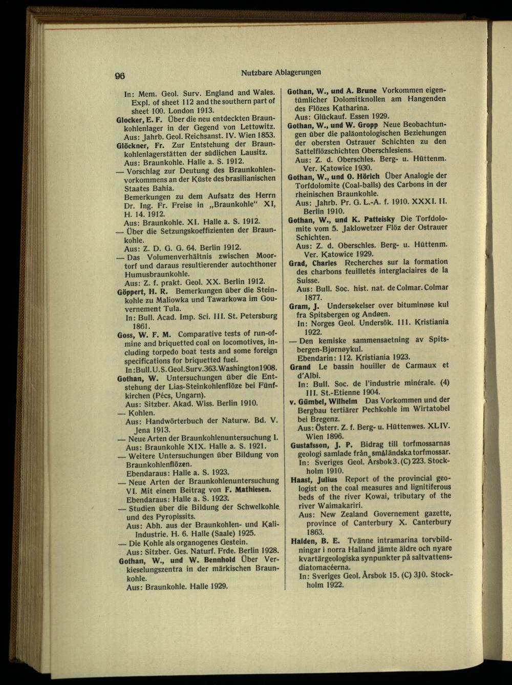 Glocker, E. F. Über die neu entdeckten Braunkohlenlager in der Gegend von Lettowitz. Aus: Jahrb. Geol. Reichsanst. IV. Wien 1853. Glöckner, Fr. Zur Entstehung der Braunkohlenlagerstätten der südlichen Lausitz . Aus: Braunkohle. Halle a. S. 1912.